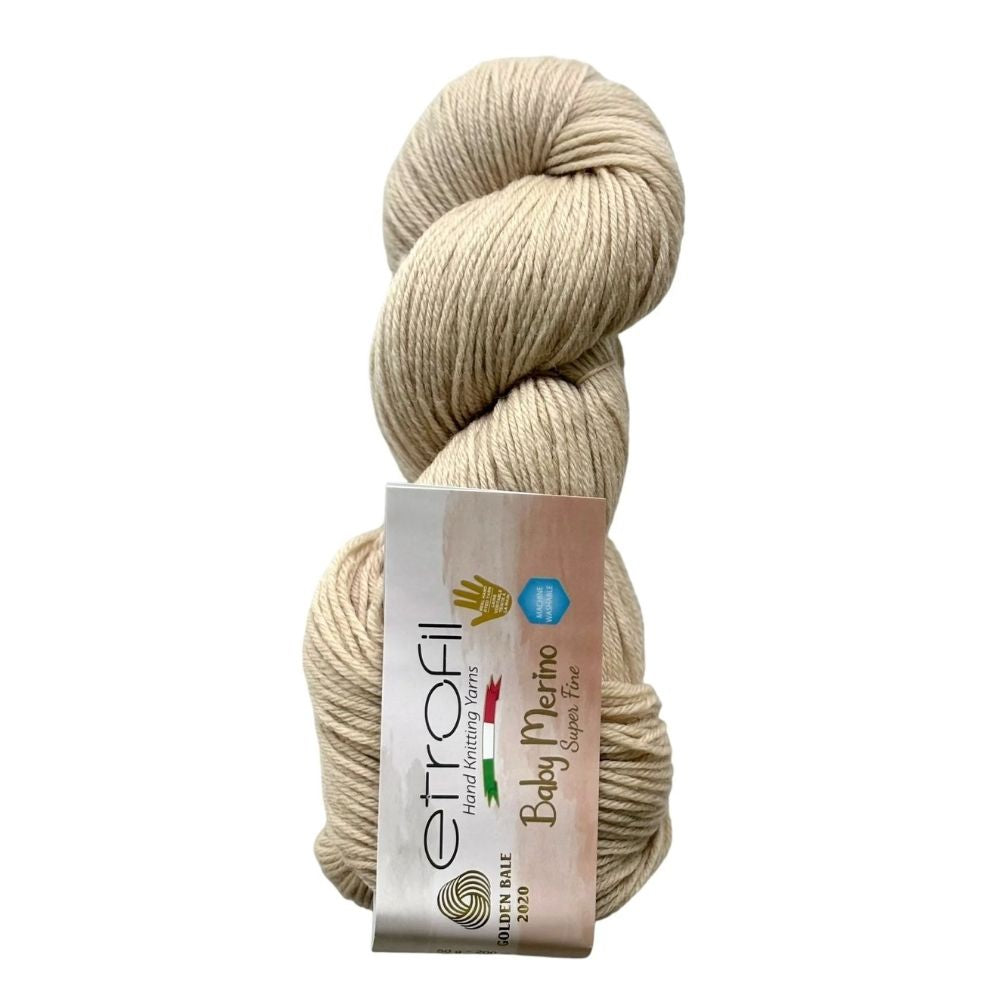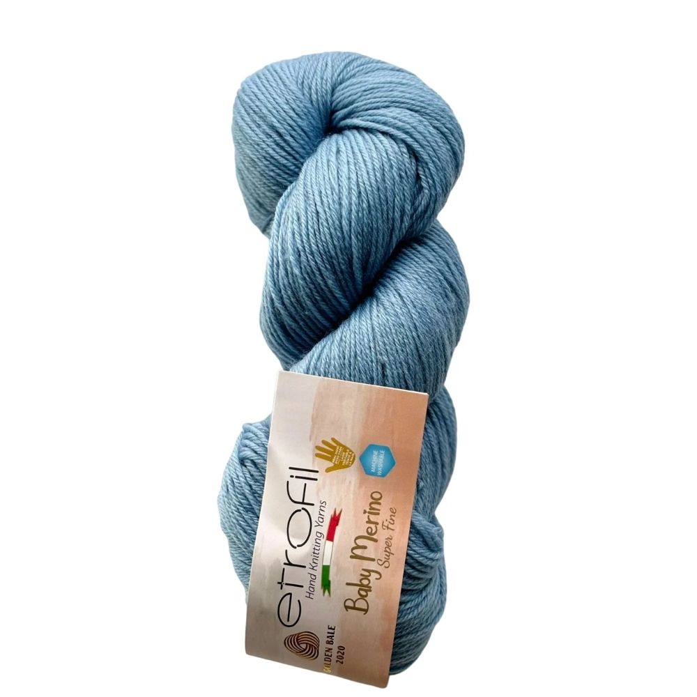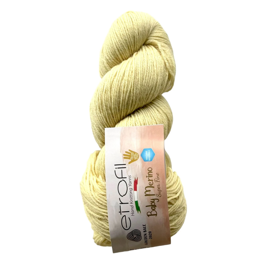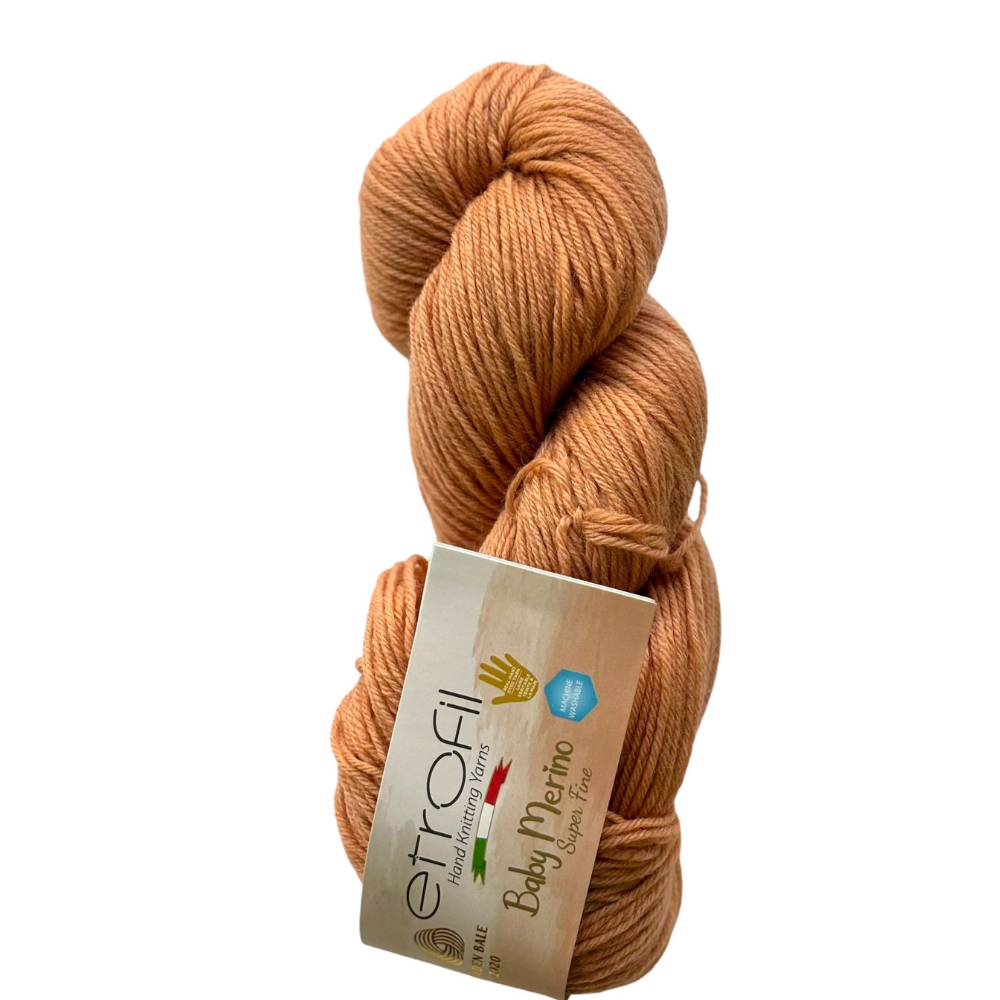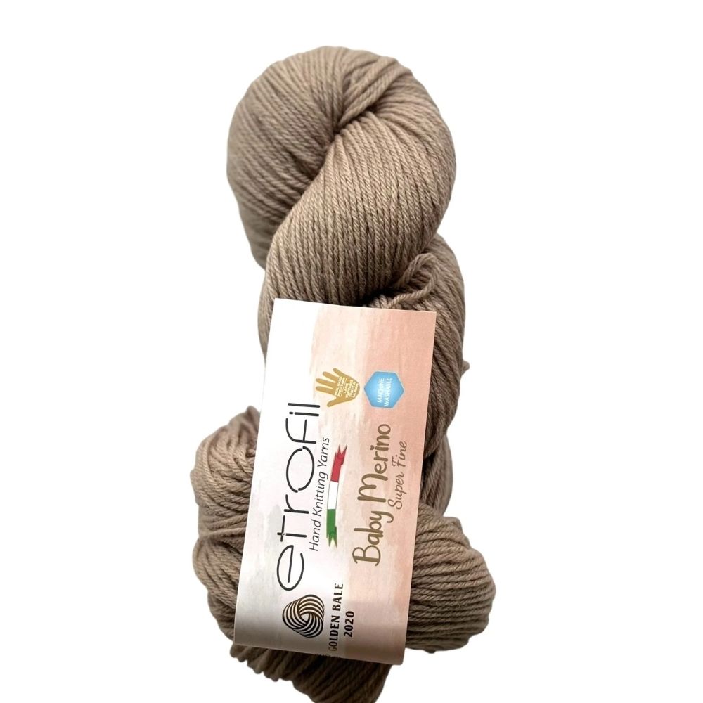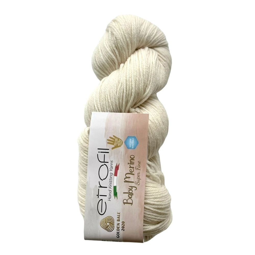 Etrofil Baby Merino is een premium, zacht en ademend garen van 100 % Merinowol. Dit fijn / DK garen biedt uitstekende stekenkwaliteit en eenvoudig breiwerk, perfect voor delicate kledingstukken en comfortabele accessoires.