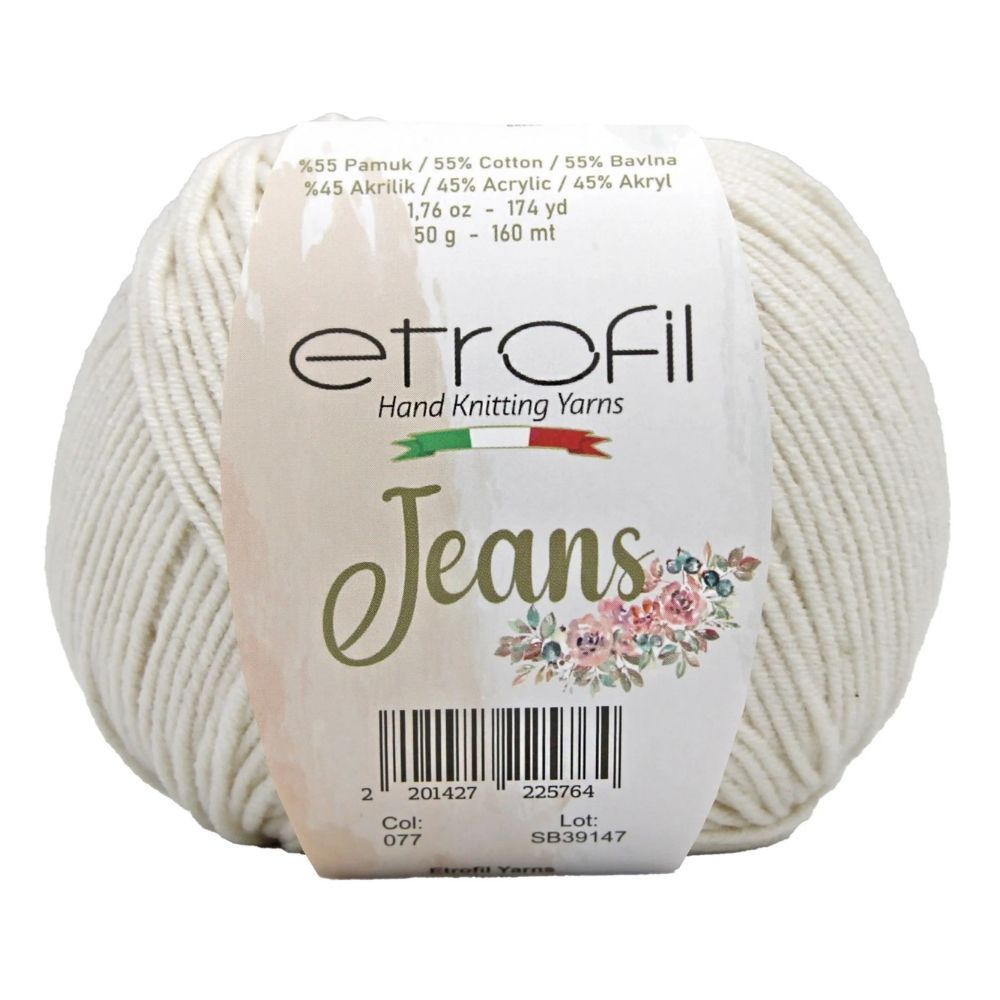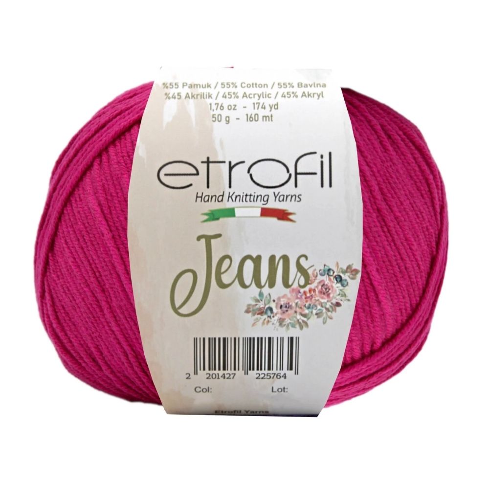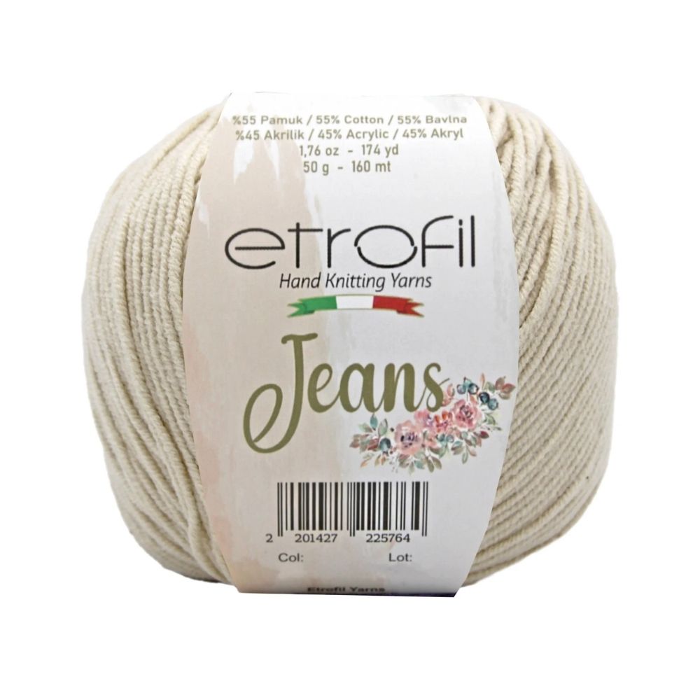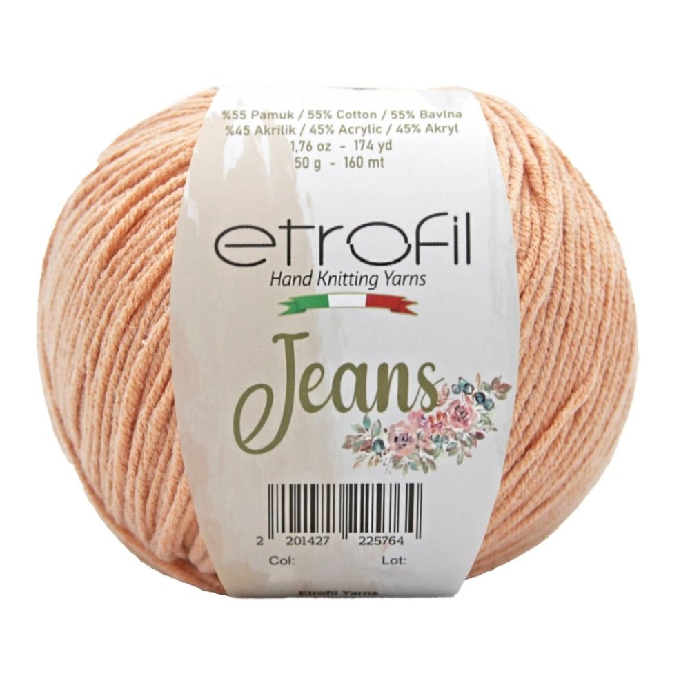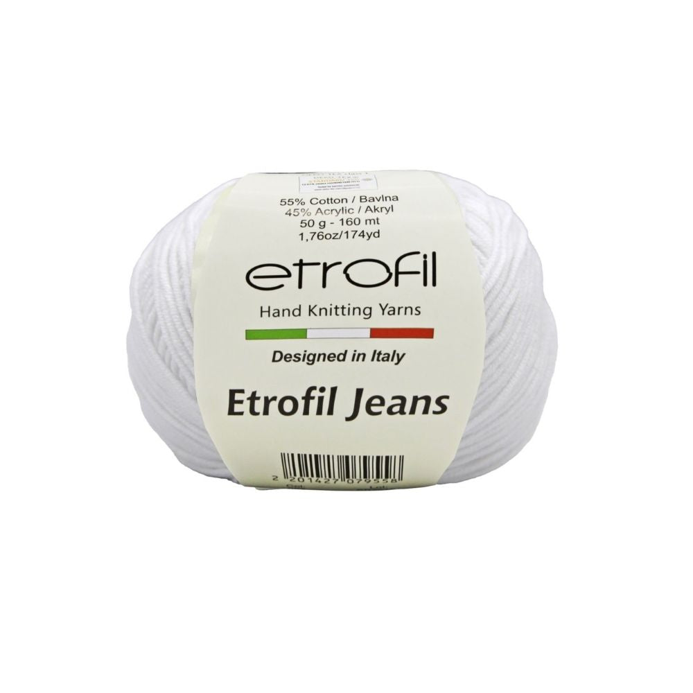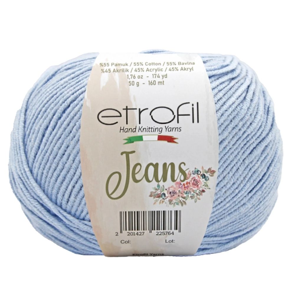 Etrofil Jeans is een veelzijdig garen gemaakt van 55 % katoen en 45 % acrylaat. De natuurlijke katoenvezels bieden zachtheid, ademend vermogen en comfort, terwijl acrylaat zorgt voor duurzaamheid, flexibiliteit en kleurvastheid.