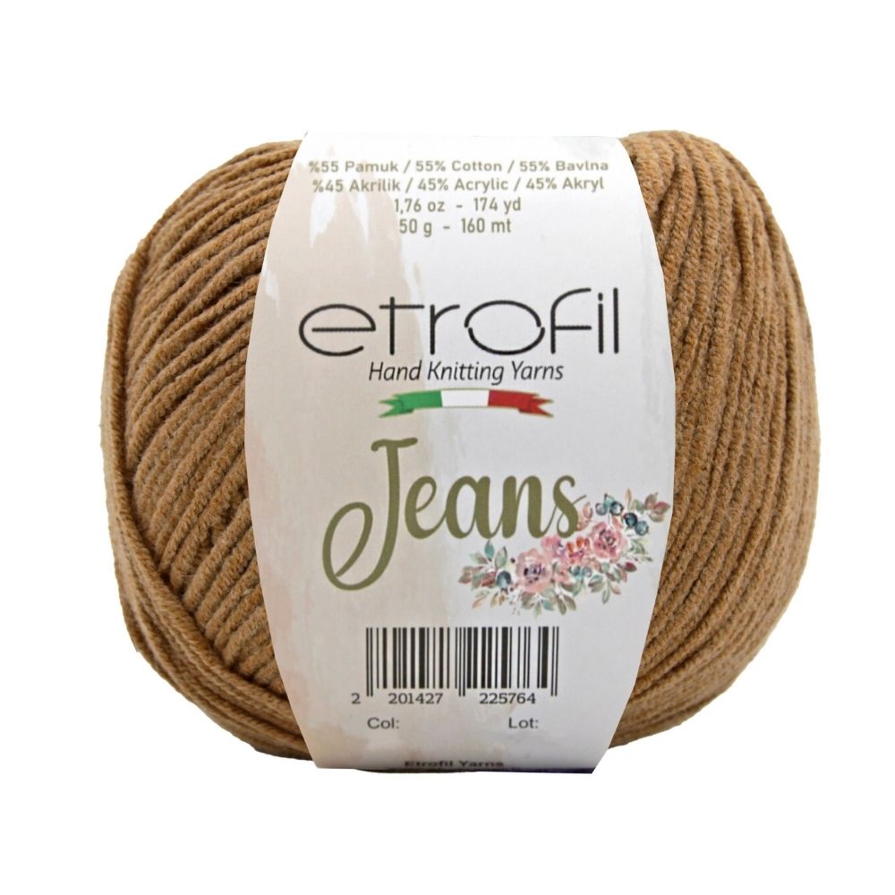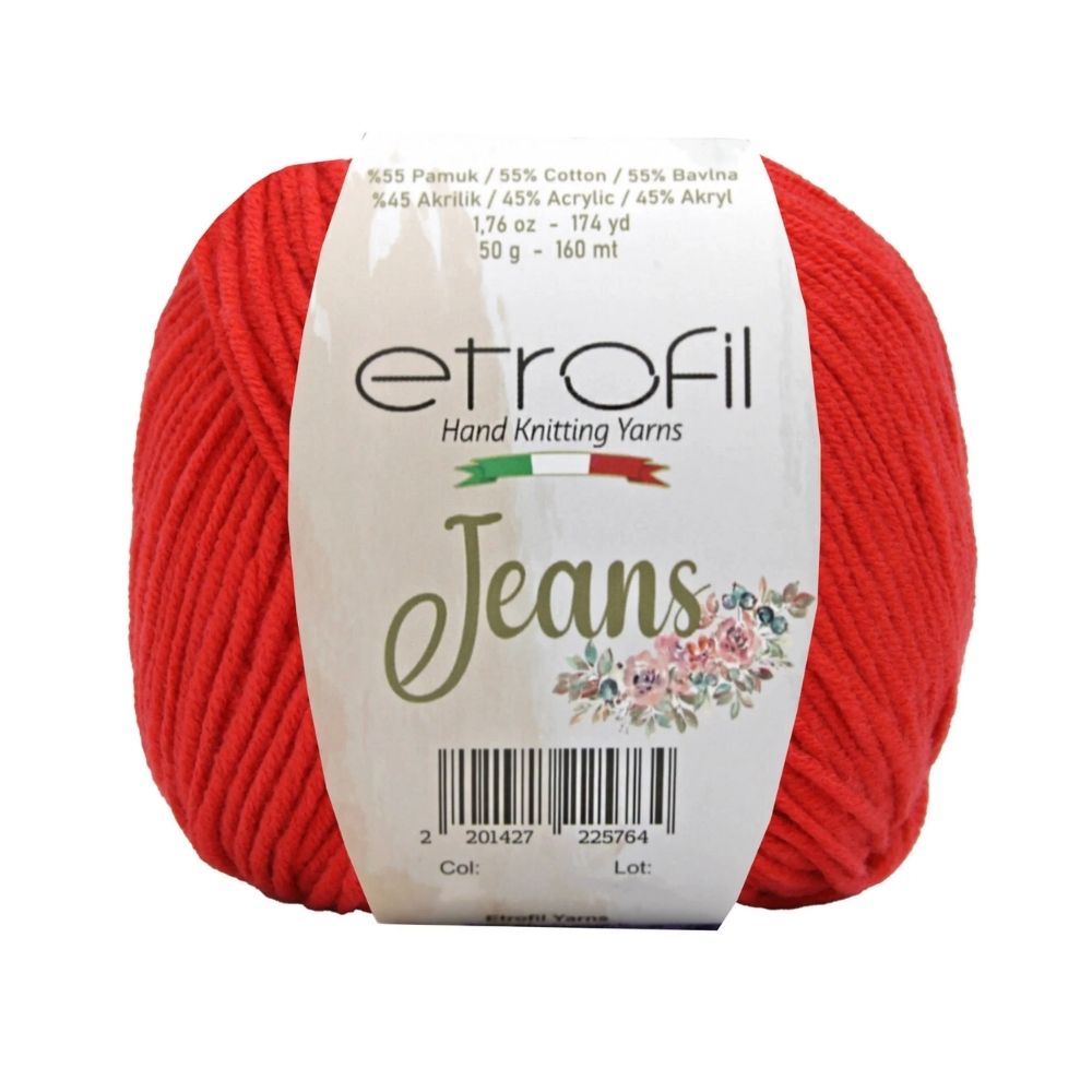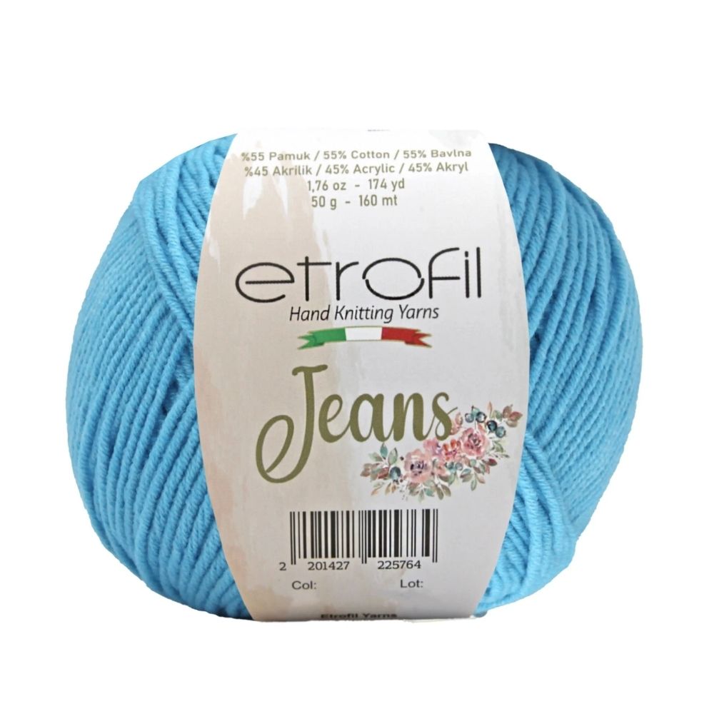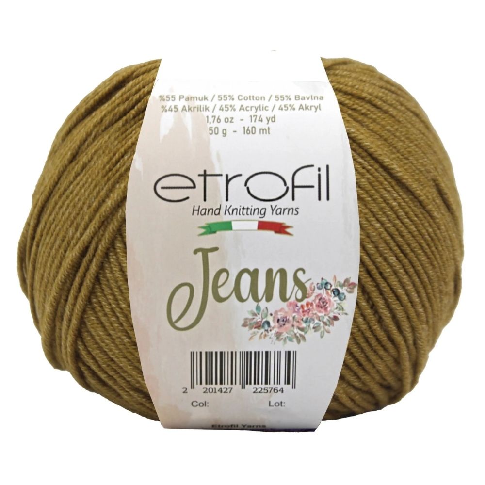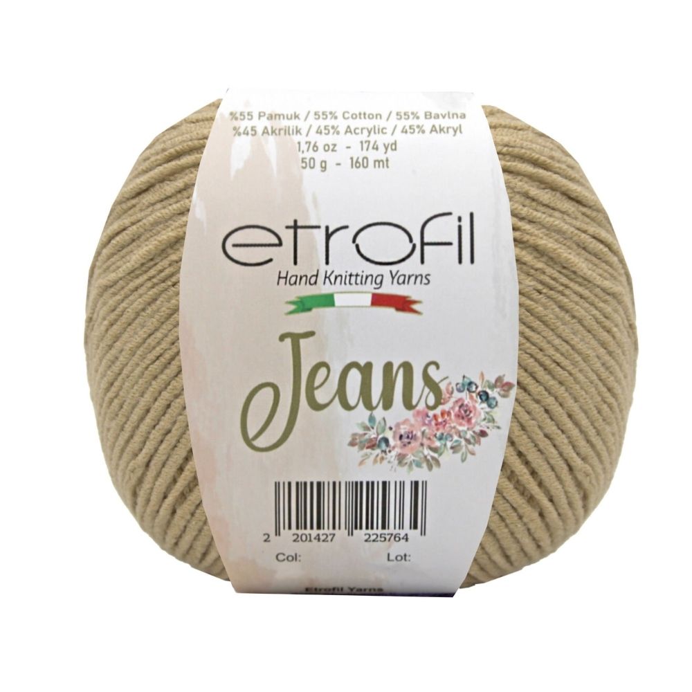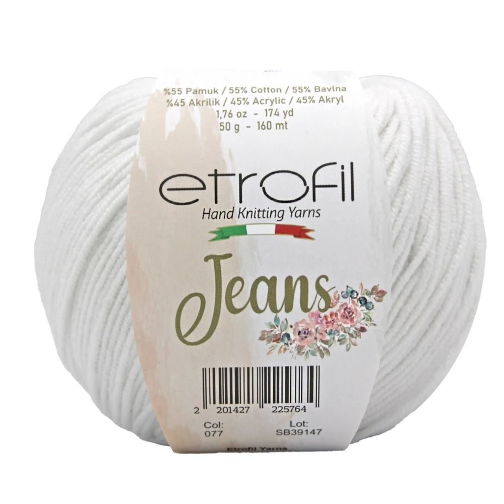 Etrofil Jeans is een veelzijdig garen gemaakt van 55 % katoen en 45 % acrylaat. De natuurlijke katoenvezels bieden zachtheid, ademend vermogen en comfort, terwijl acrylaat zorgt voor duurzaamheid, flexibiliteit en kleurvastheid.