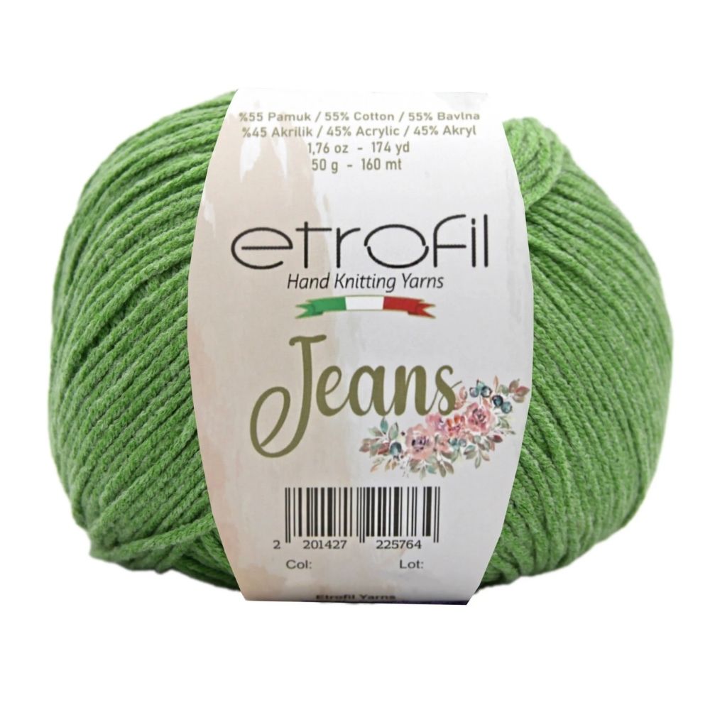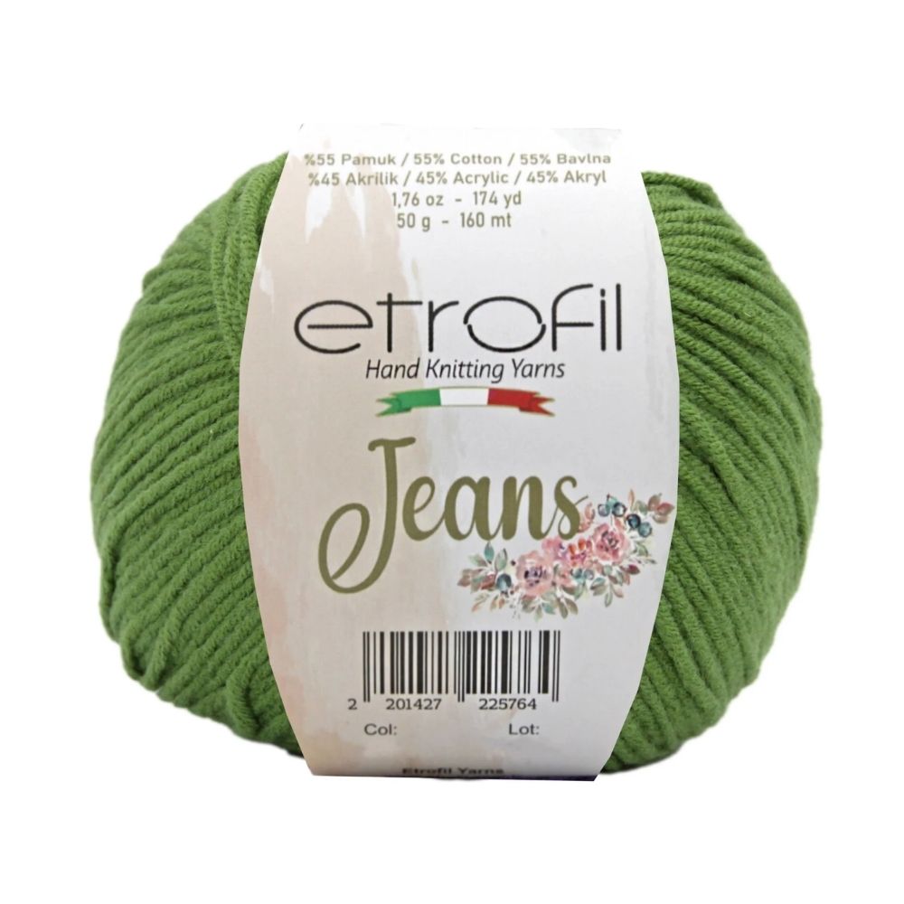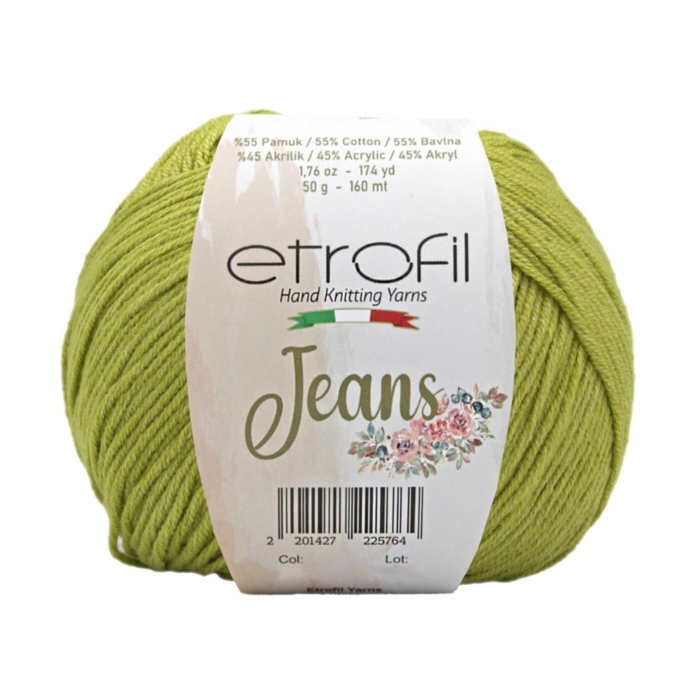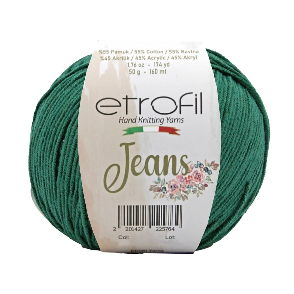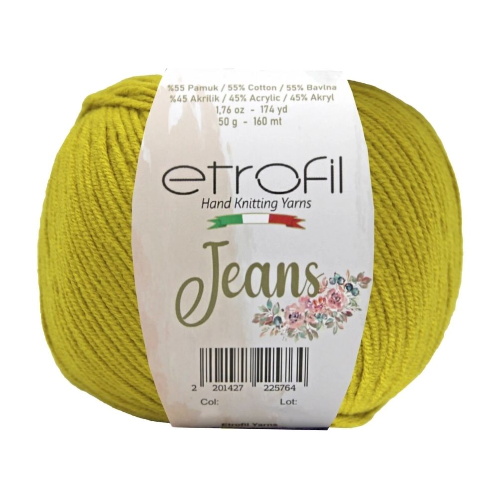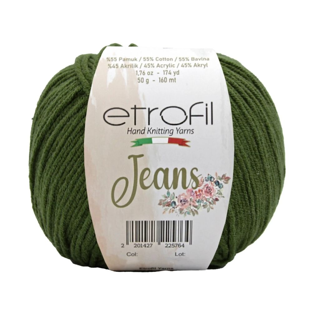 Etrofil Jeans is een veelzijdig garen gemaakt van 55 % katoen en 45 % acrylaat. De natuurlijke katoenvezels bieden zachtheid, ademend vermogen en comfort, terwijl acrylaat zorgt voor duurzaamheid, flexibiliteit en kleurvastheid.