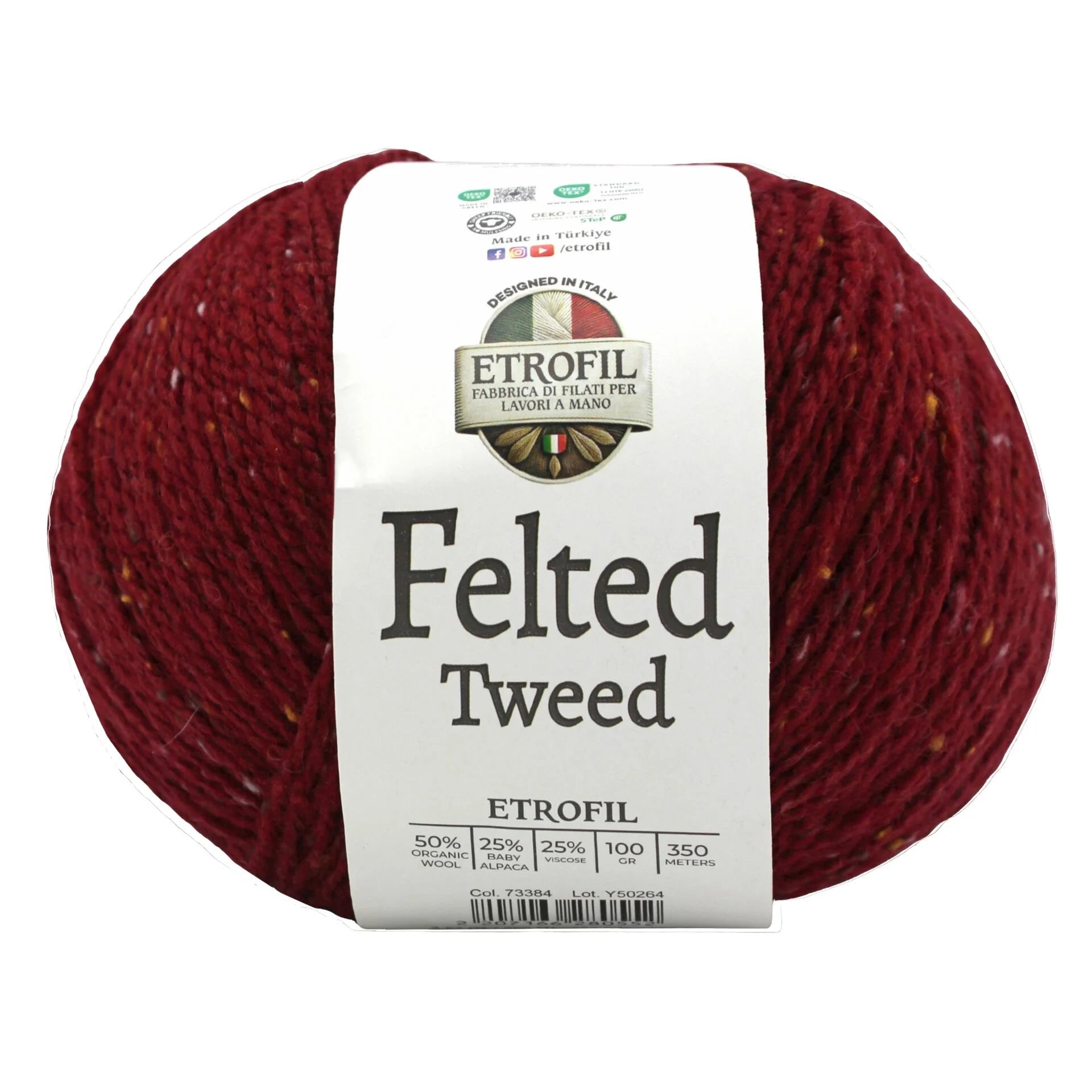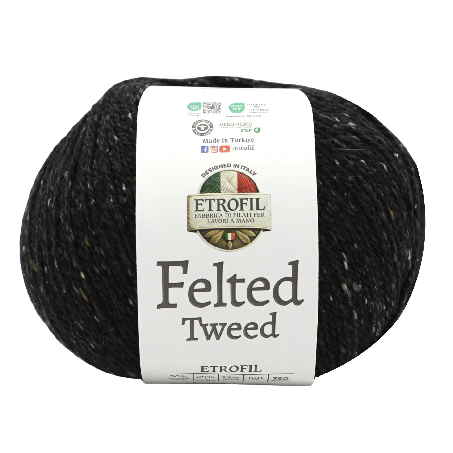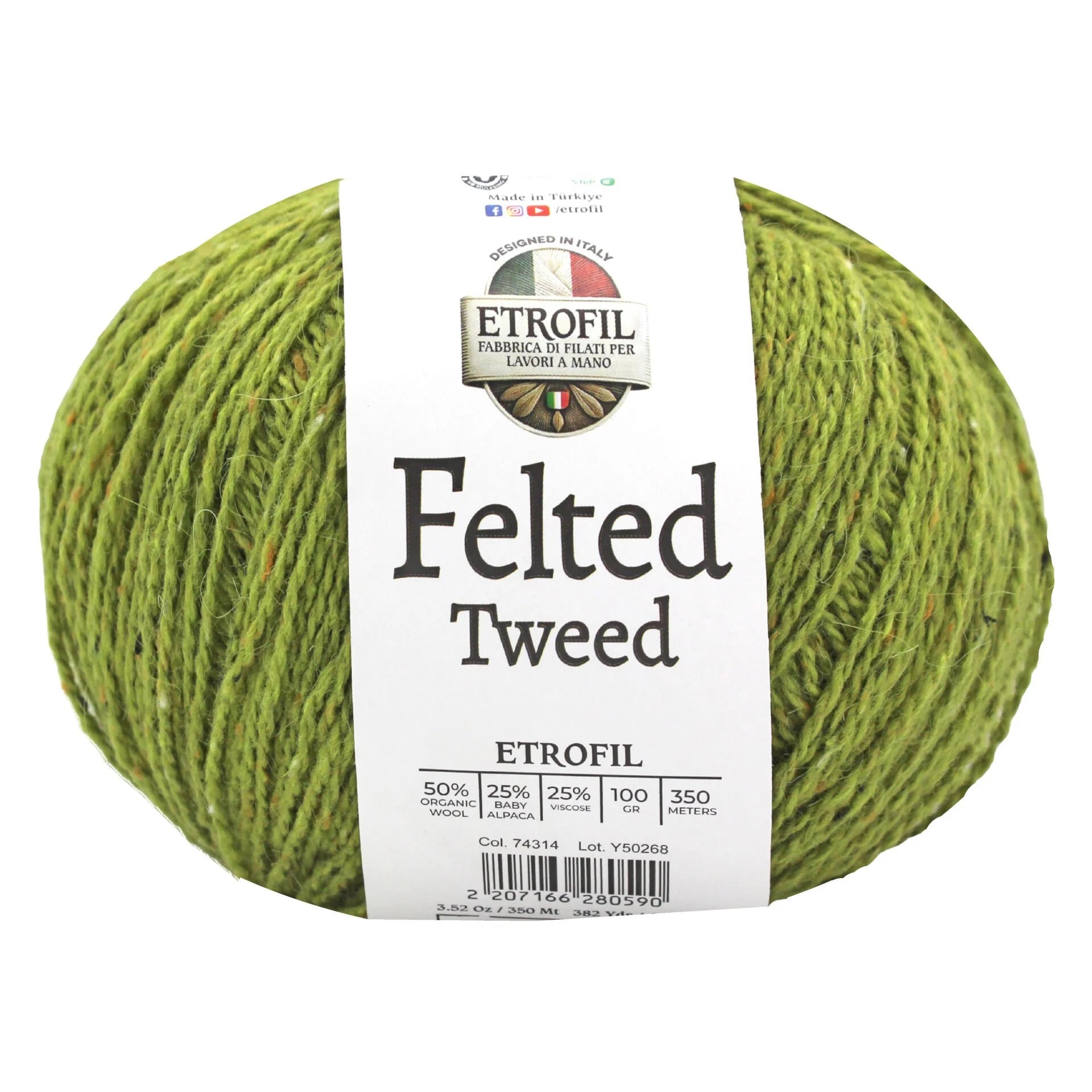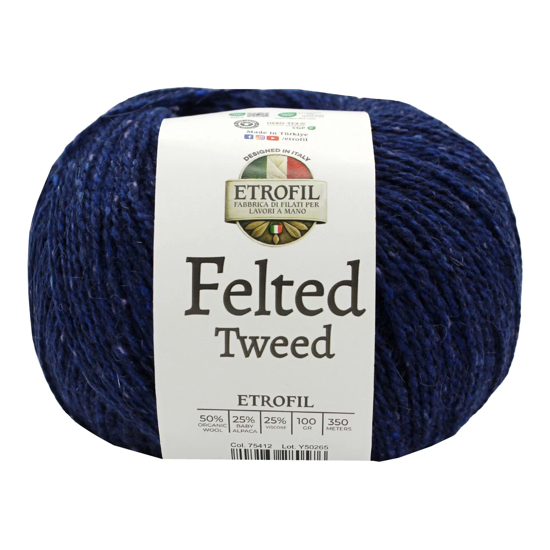 Etrofil Felted Tweed is een hoogwaardige tweedgaren geïnspireerd door de natuur. De combinatie van organische merinowol, baby alpaca en viscose zorgt voor een zachte, lichte en ademende structuur met een elegante valling.