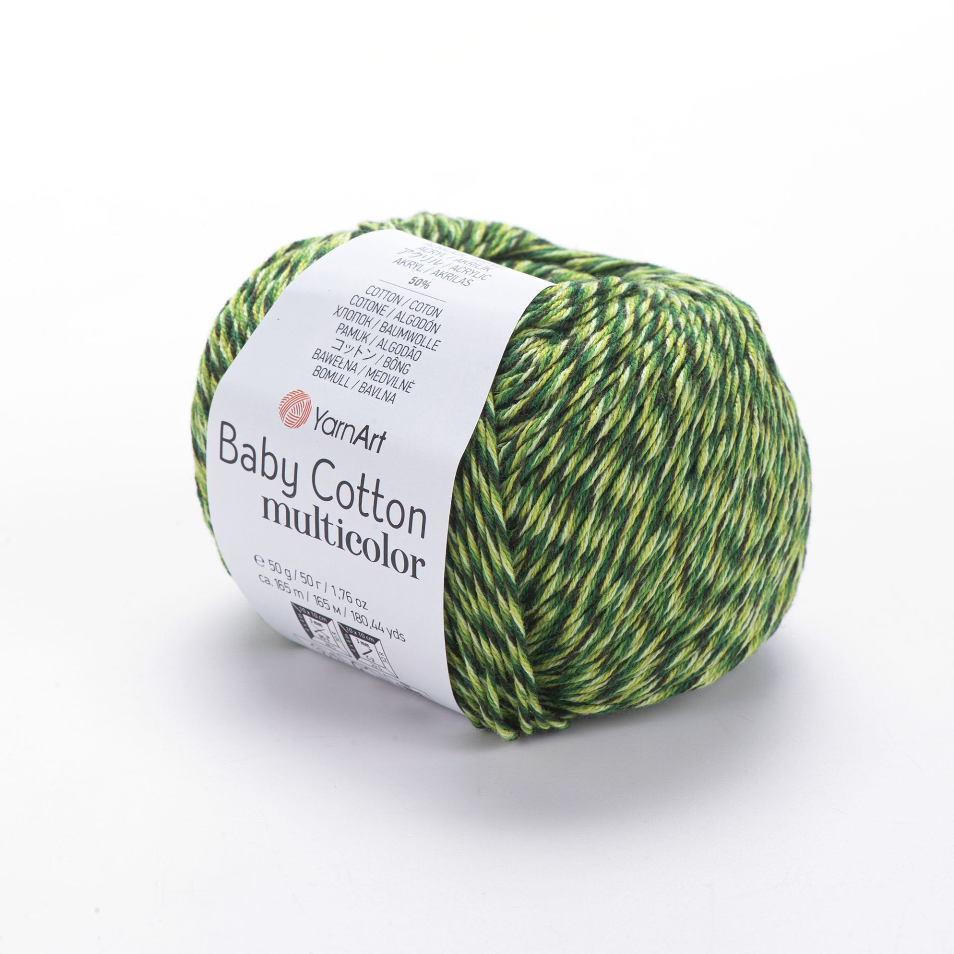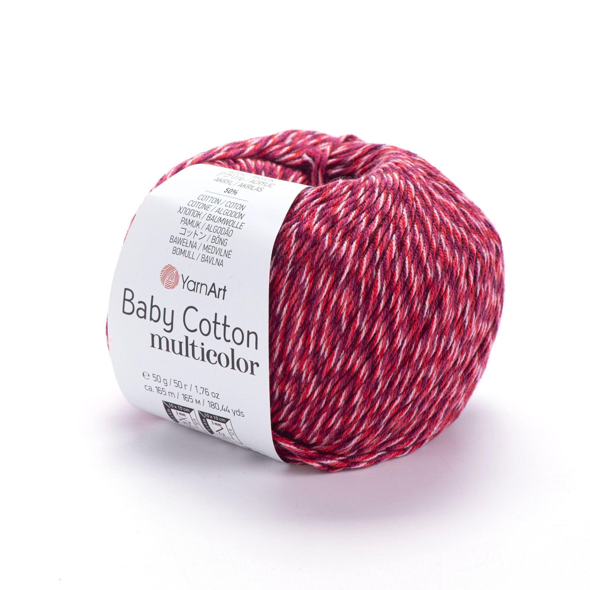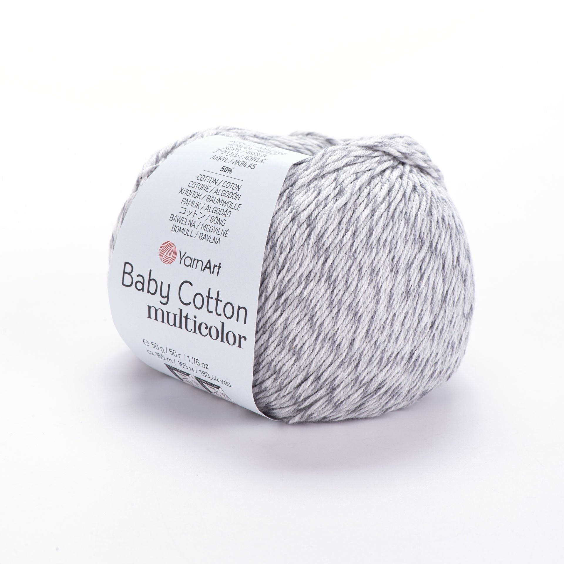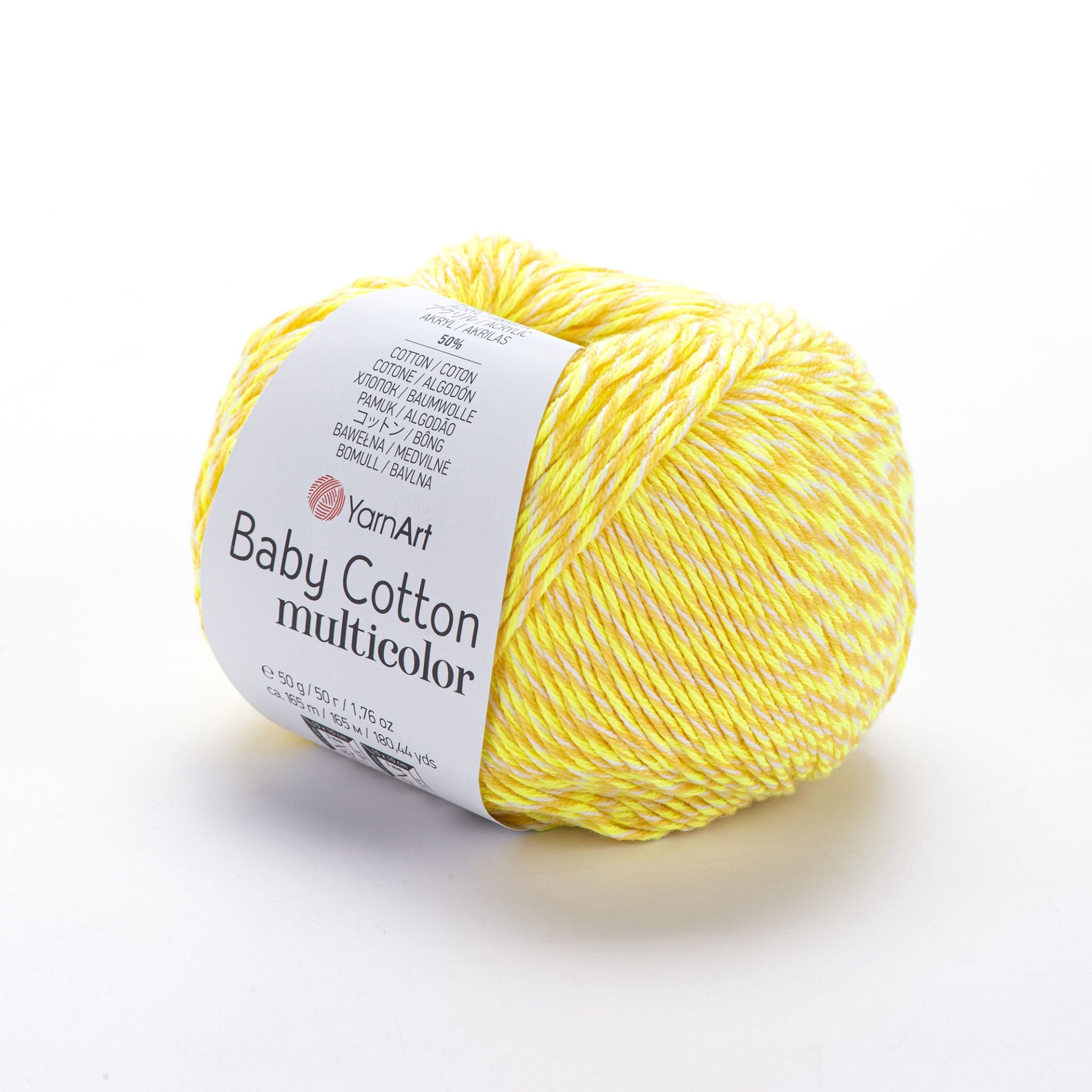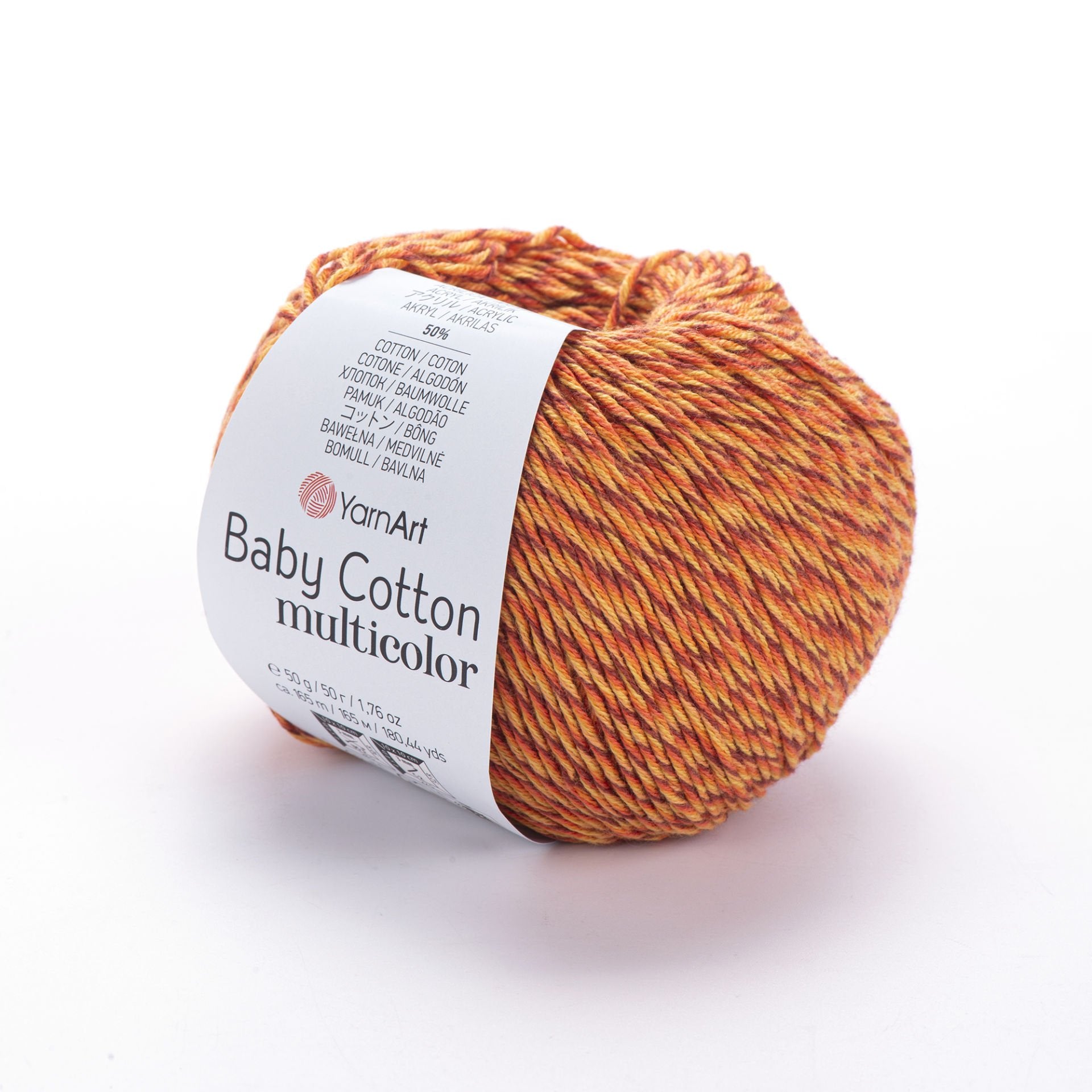 YarnArt Baby Cotton Multicolor is a delicate yarn blending the breathability of cotton with the durability of acrylic. With its lightweight (Sport/Fine) composition and soft texture, it's perfect for crafting baby garments, summer clothing, amigurumi toys, and lightweight accessories. The variegated multicolor adds visual interest to every stitch, making your creations both functional and beautiful