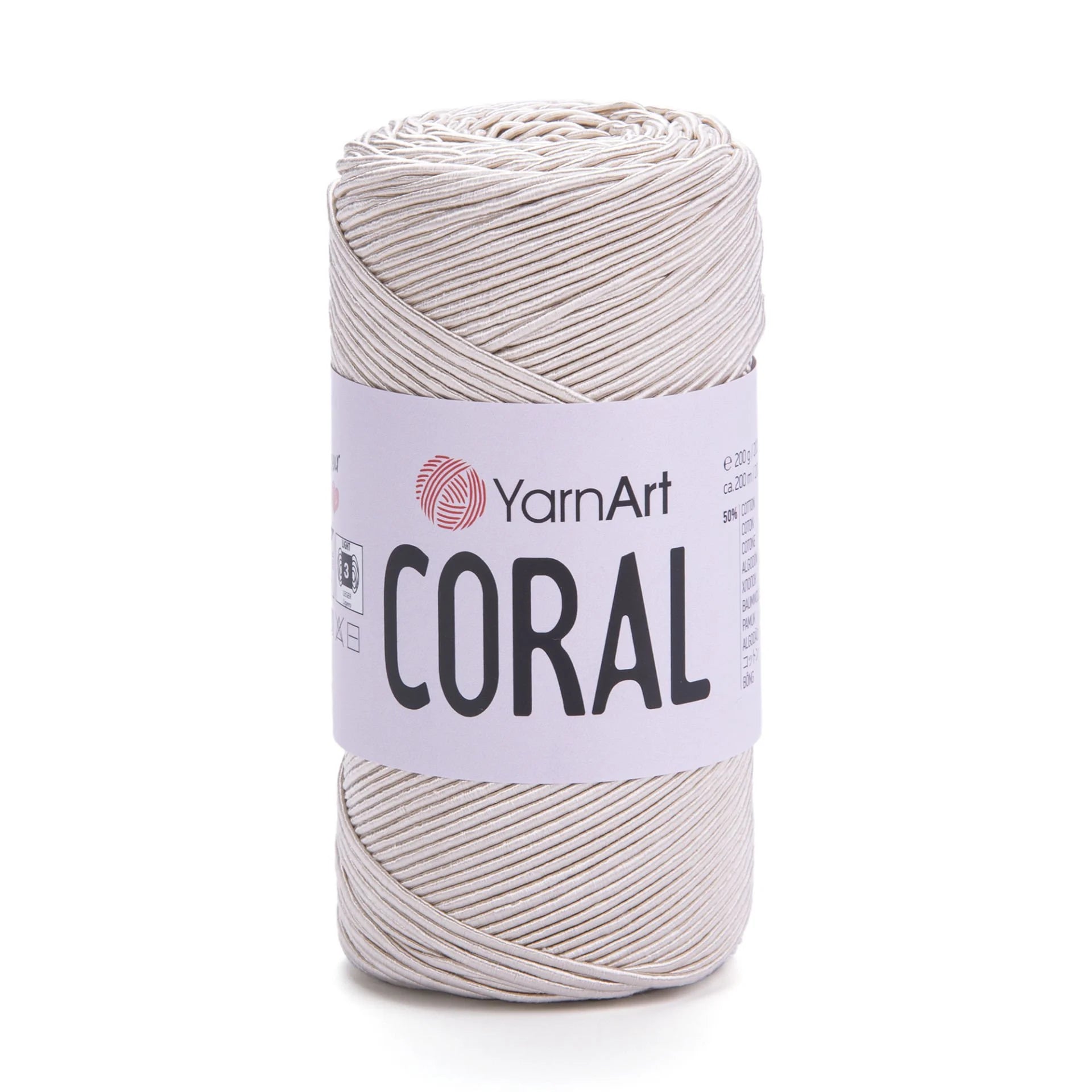 YarnArt Coral is a smooth, satin-textured yarn blending cotton and polyester for durability and softness. Perfect for macramé, crochet, and knitting projects such as bags, home décor, and accessories.