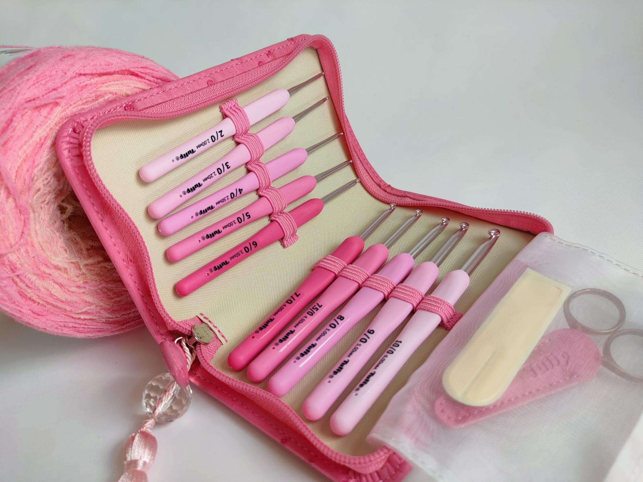 Tulip Etimo Rose Crochet Set is de perfecte combinatie van elegantie, comfort en precisie. Deze hoogwaardige haakset is ontworpen voor haakliefhebbers die het beste gereedschap willen voor hun projecten. Met de zachte grip en gladde metalen haak kun je urenlang comfortabel werken zonder vermoeidheid. De stijlvolle roze etui met kwastje maakt het ook een prachtig cadeau voor creatieve vrienden of familie.