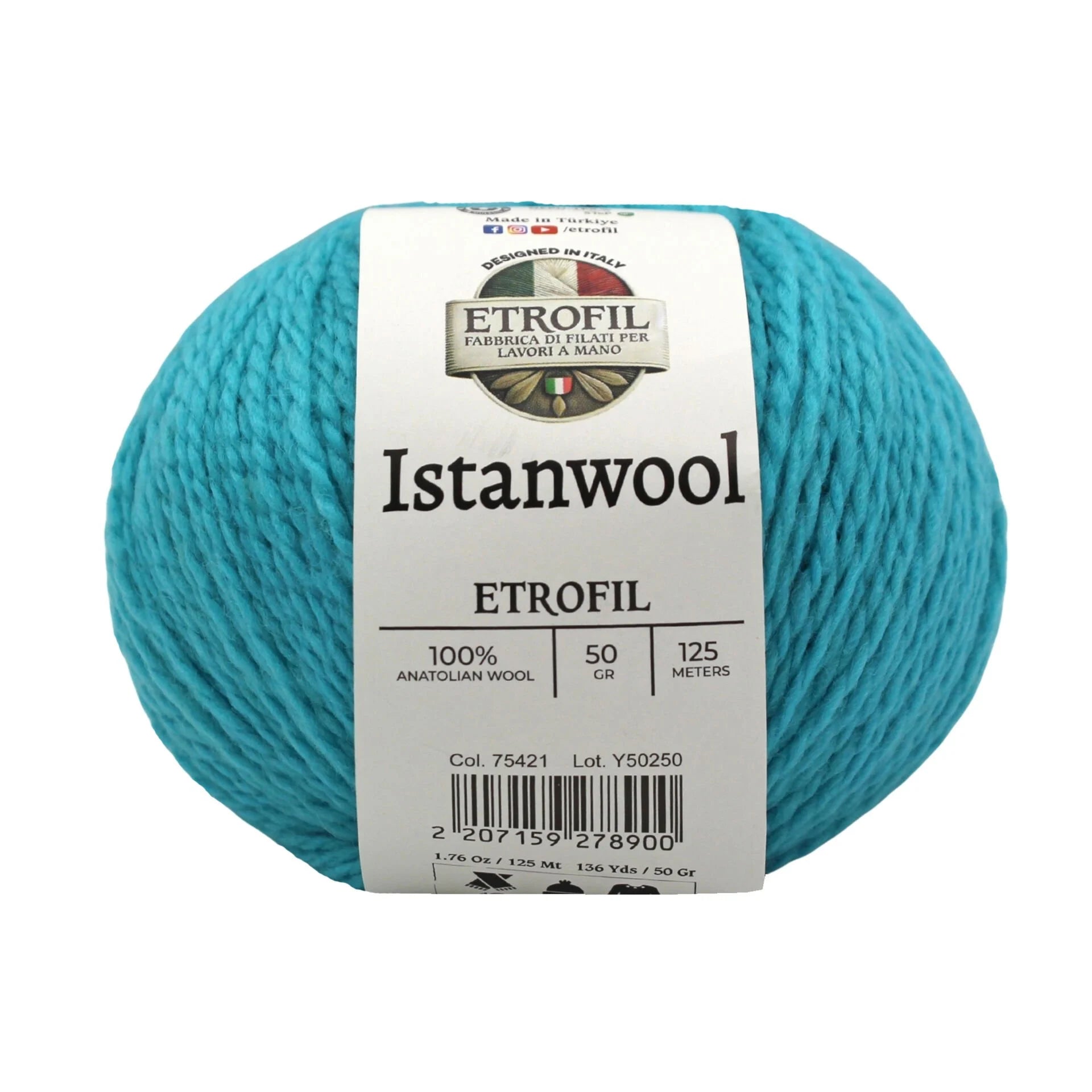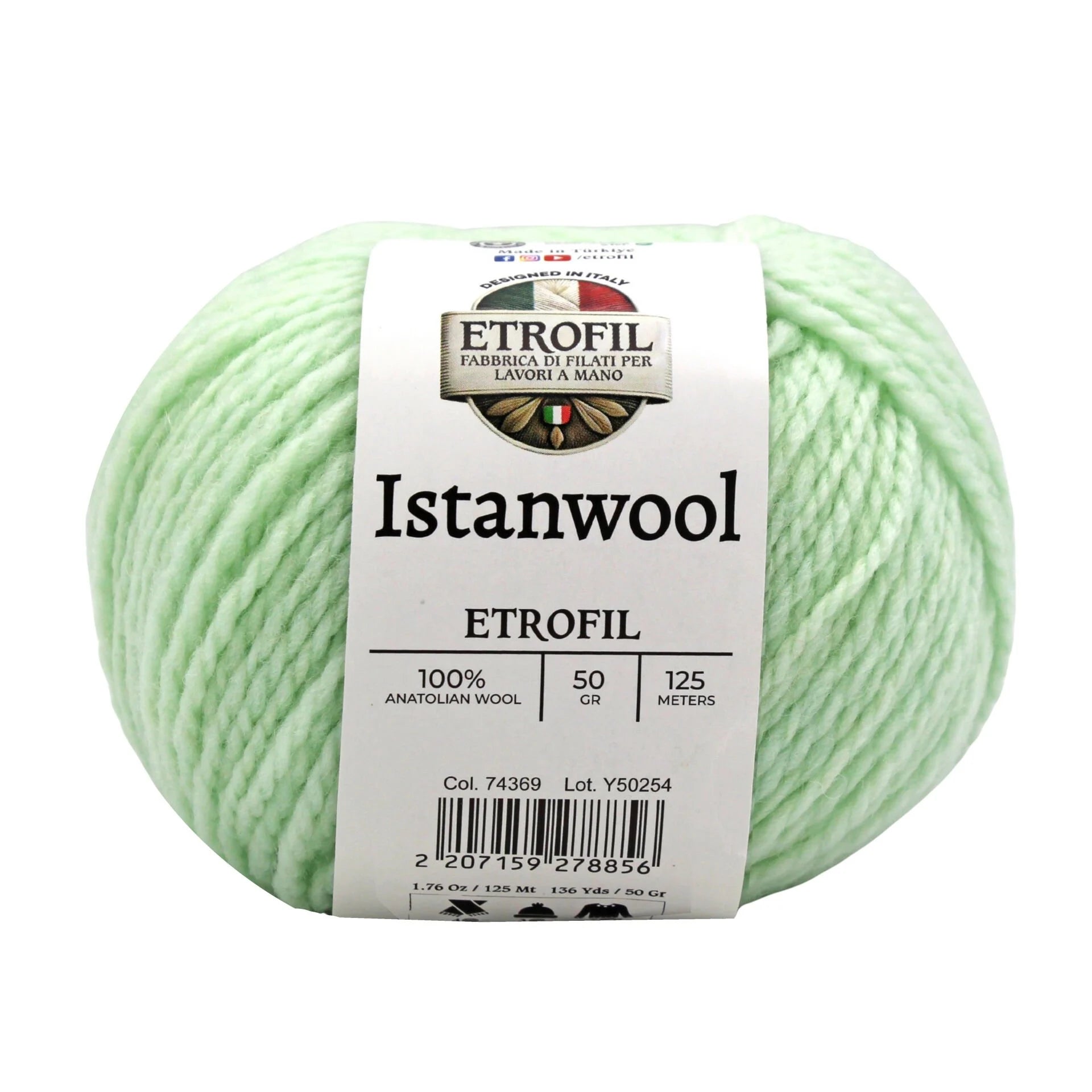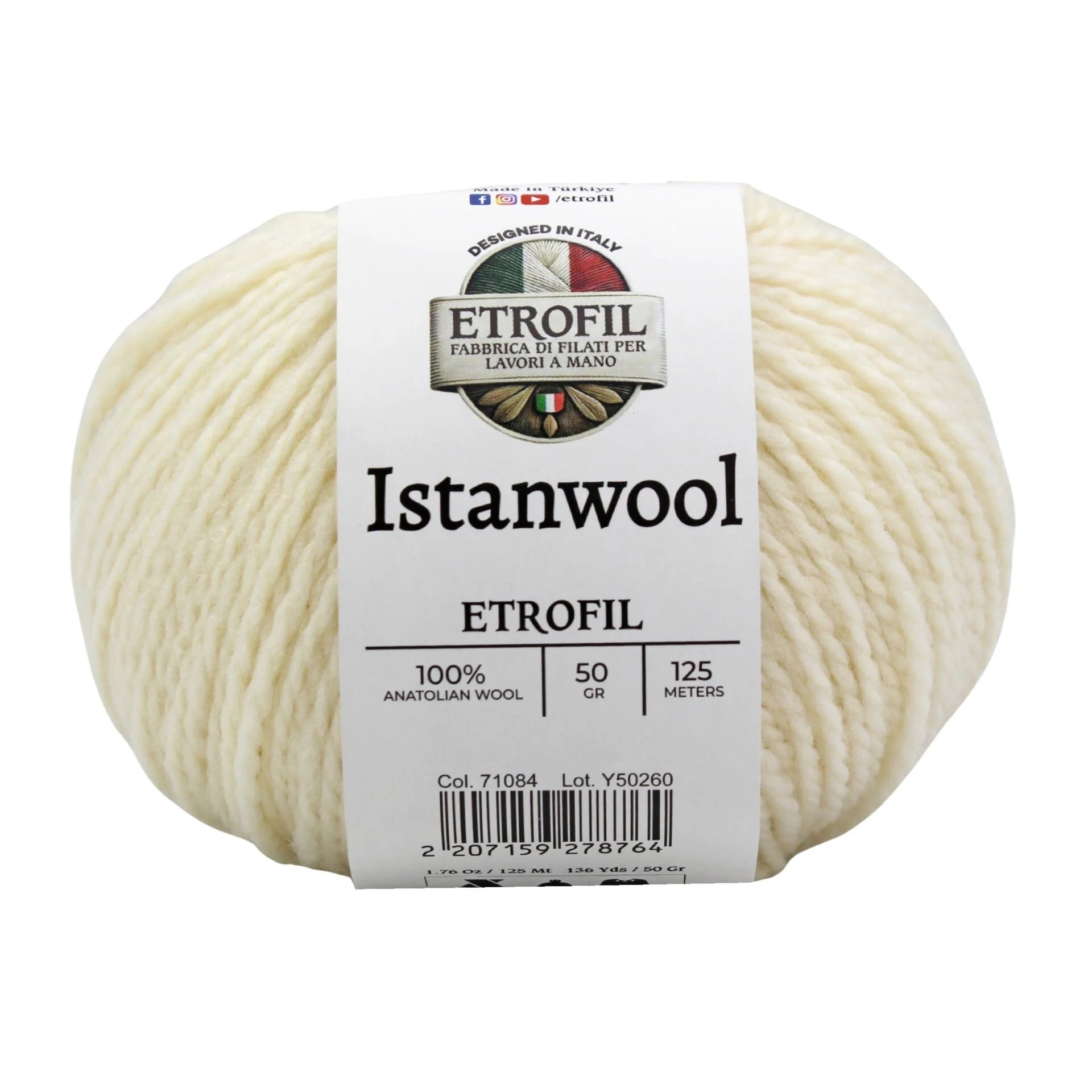 Etrofil Istanwool is a premium 100% Anatolian wool yarn that captures the rich heritage of Turkey’s traditional fibers. Each 50 g skein offers approximately 125 meters of natural wool, providing warmth, softness, and superb stitch definition. Its light/DK weight makes it ideal for classic garments and accessories, including sweaters, shawls, cardigans, hats, and scarves with a refined drape.
