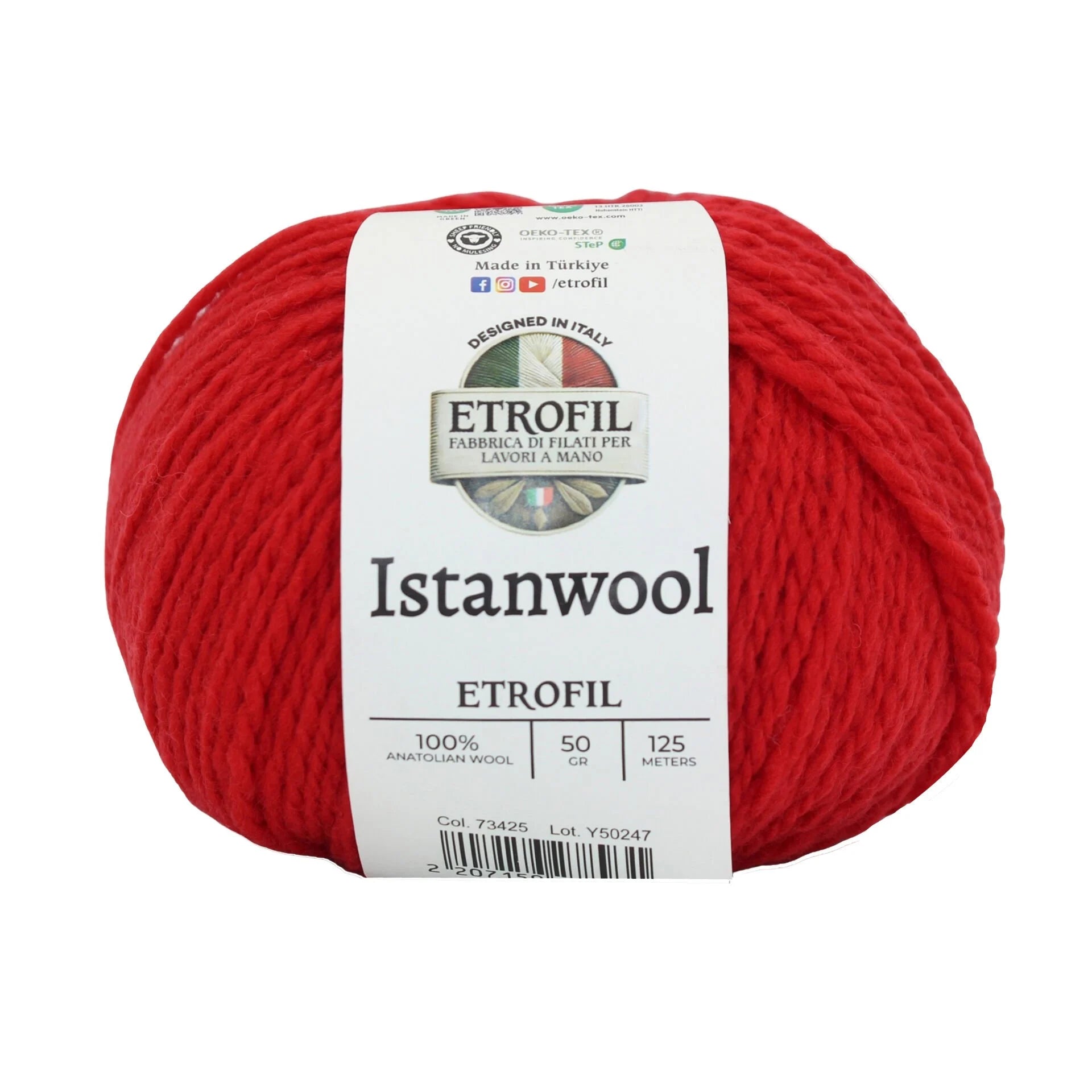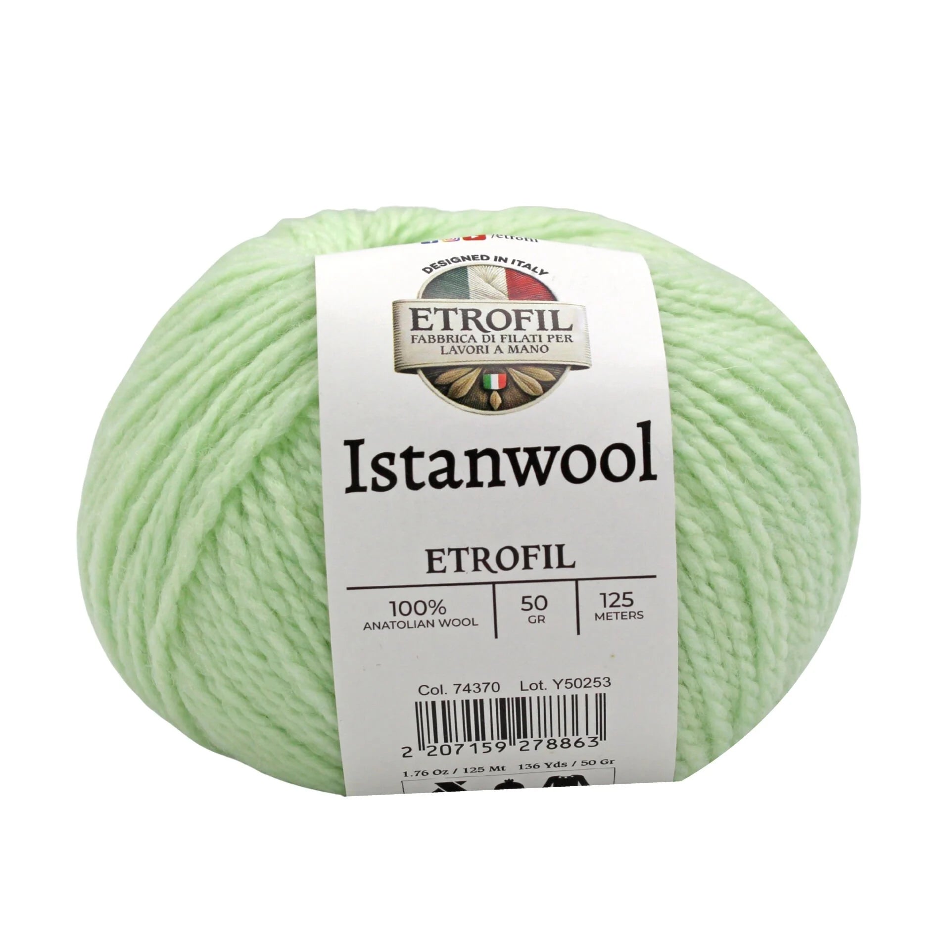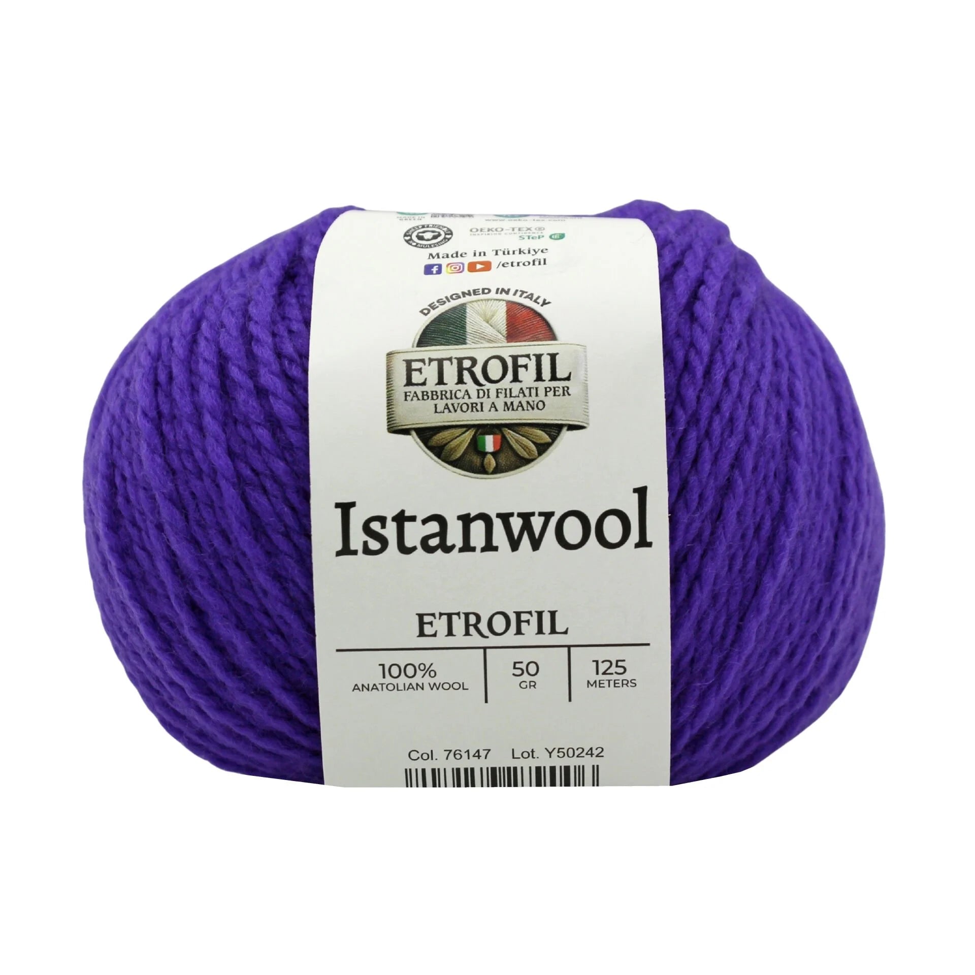 Etrofil Istanwool is a premium 100% Anatolian wool yarn that captures the rich heritage of Turkey’s traditional fibers. Each 50 g skein offers approximately 125 meters of natural wool, providing warmth, softness, and superb stitch definition. Its light/DK weight makes it ideal for classic garments and accessories, including sweaters, shawls, cardigans, hats, and scarves with a refined drape.