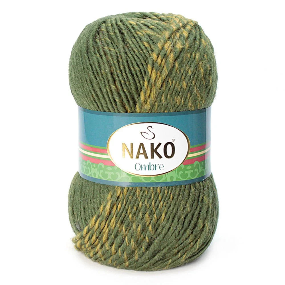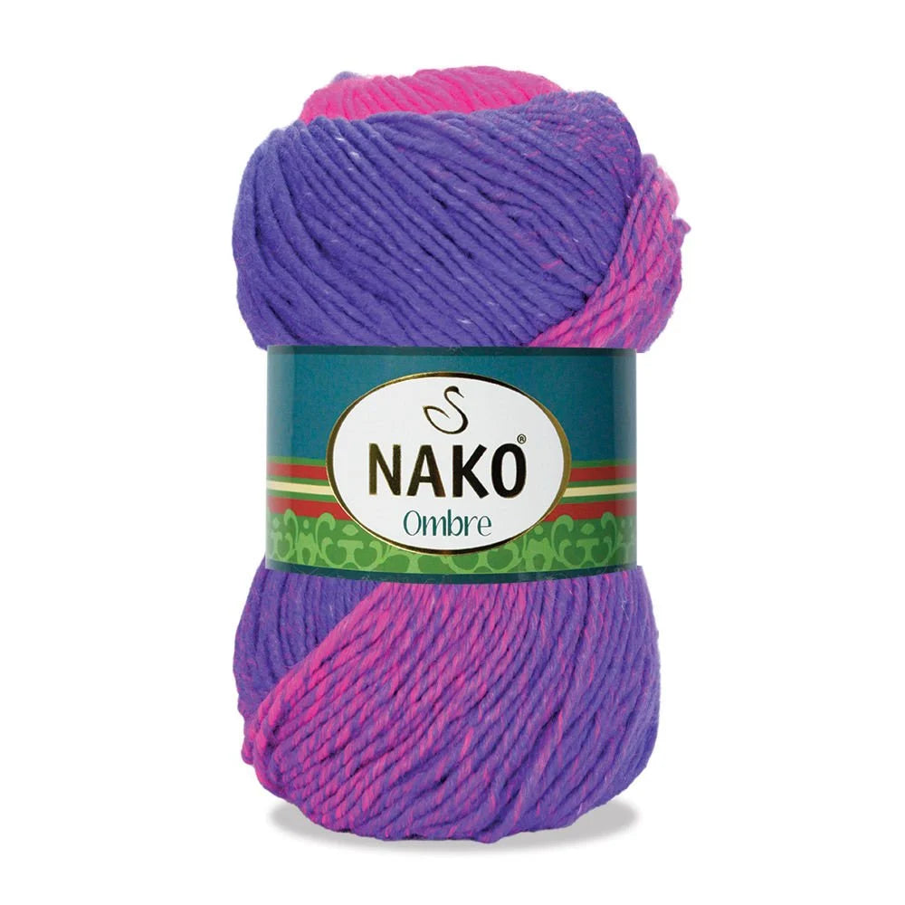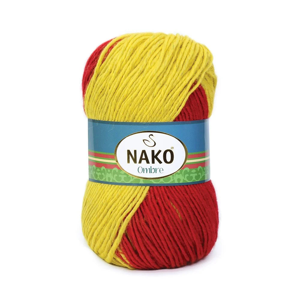 Experience the rich blend of %25 wool and %75 premium acrylic with the Nako Ombre Multicolor yarn. Perfect for fall and winter, this yarn is versatile and durable, making it ideal for creating scarves, hats, sweaters, and other accessories. With a luxurious 100 gram weight and 190 meters of length, let your creativity shine with this patterned colorful hand-knitted yarn.