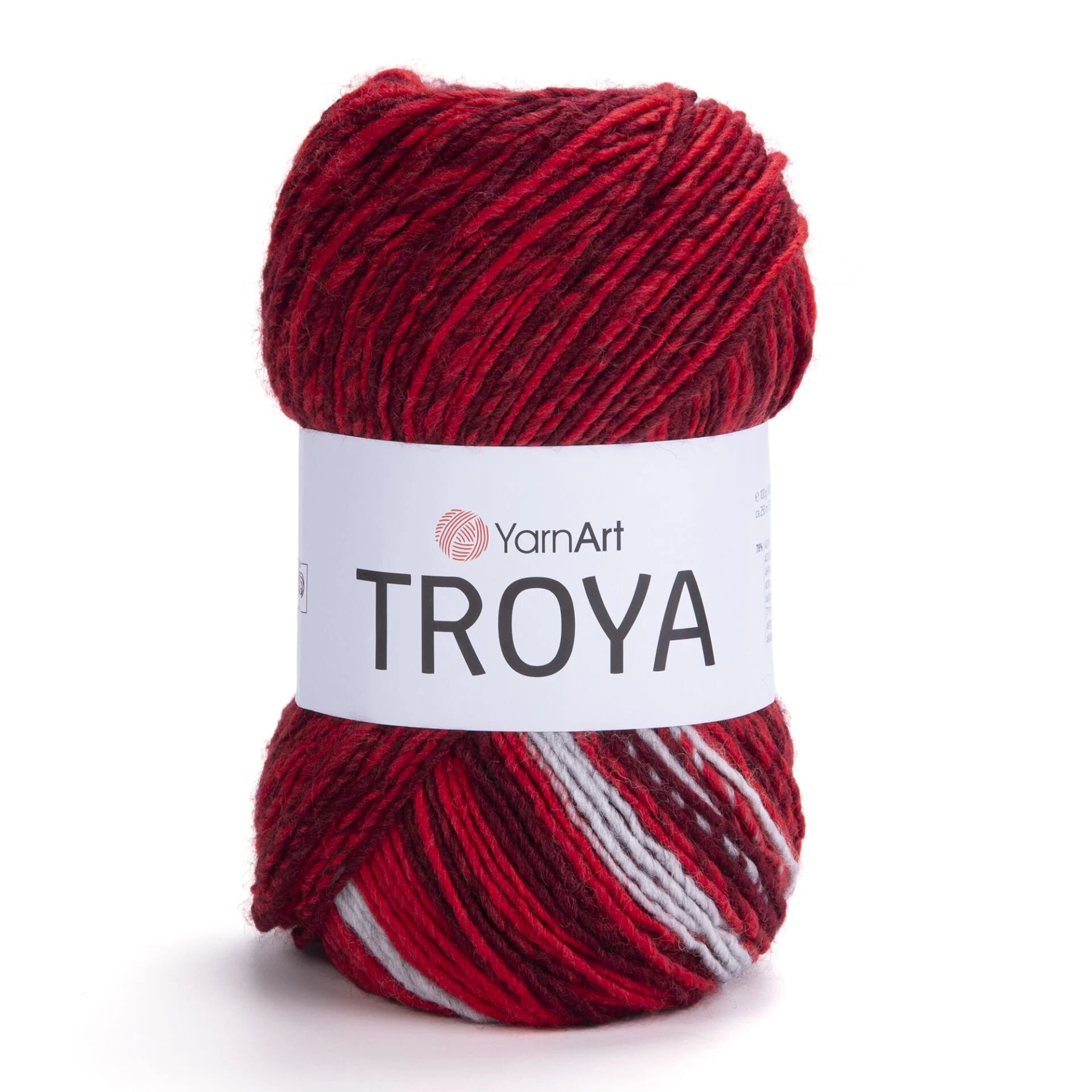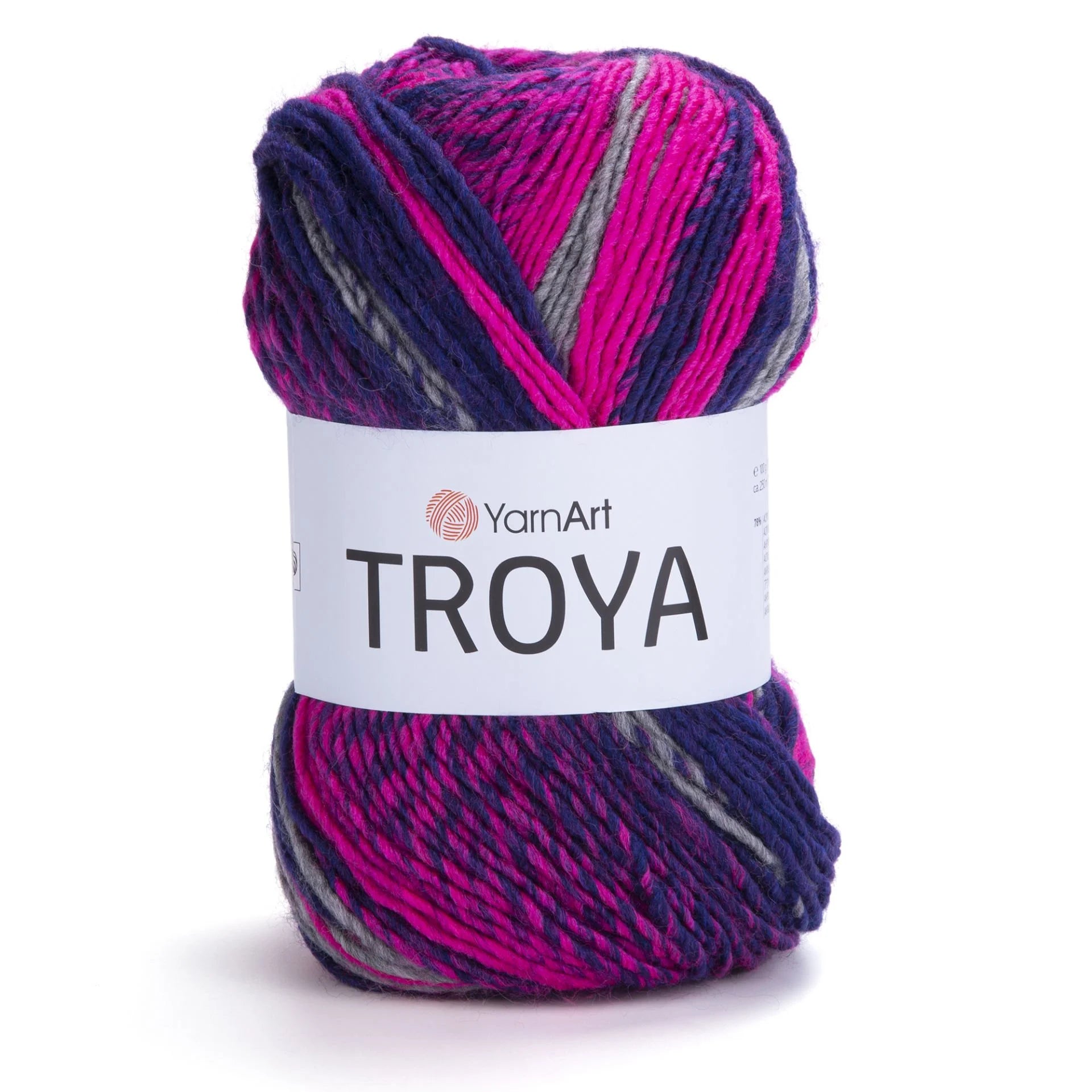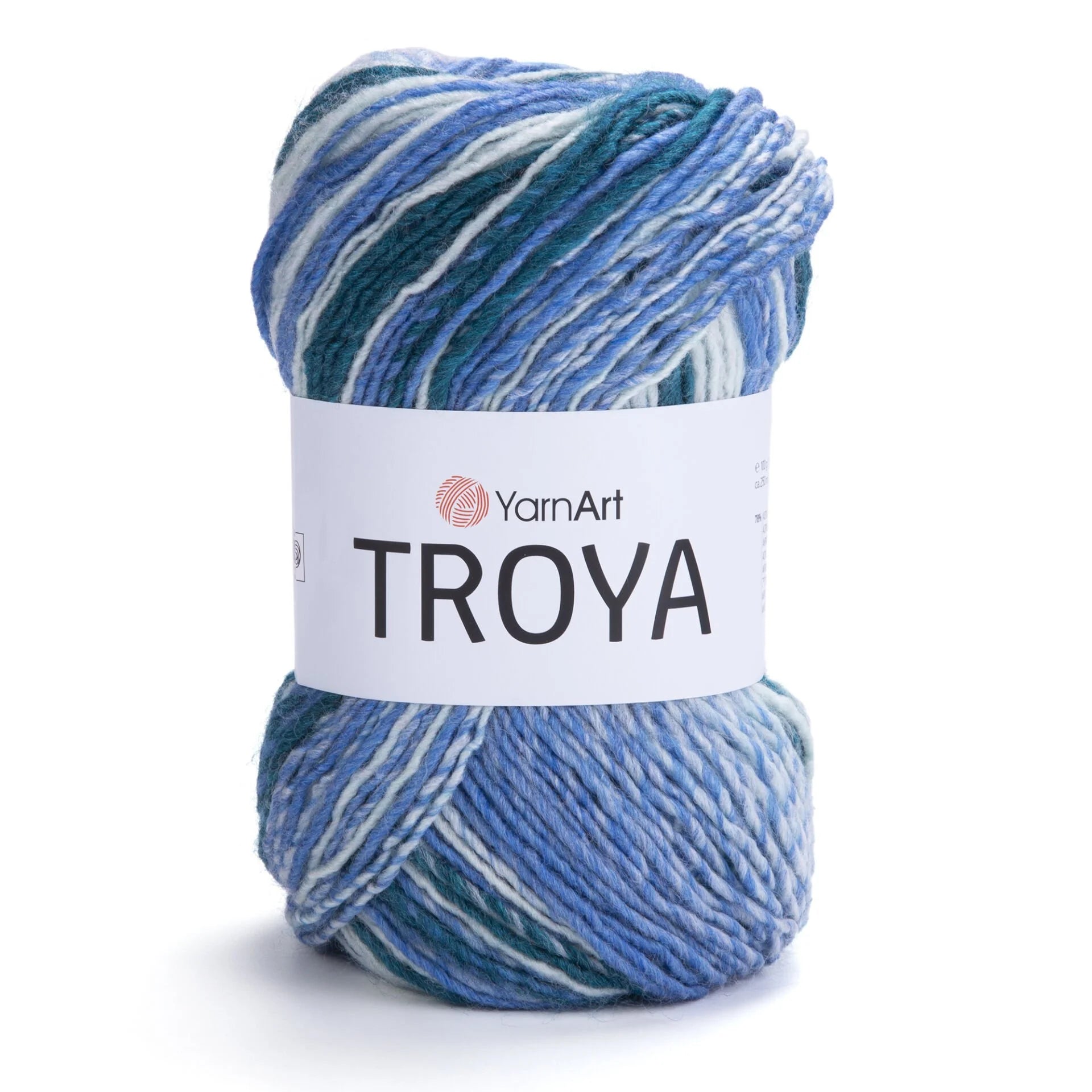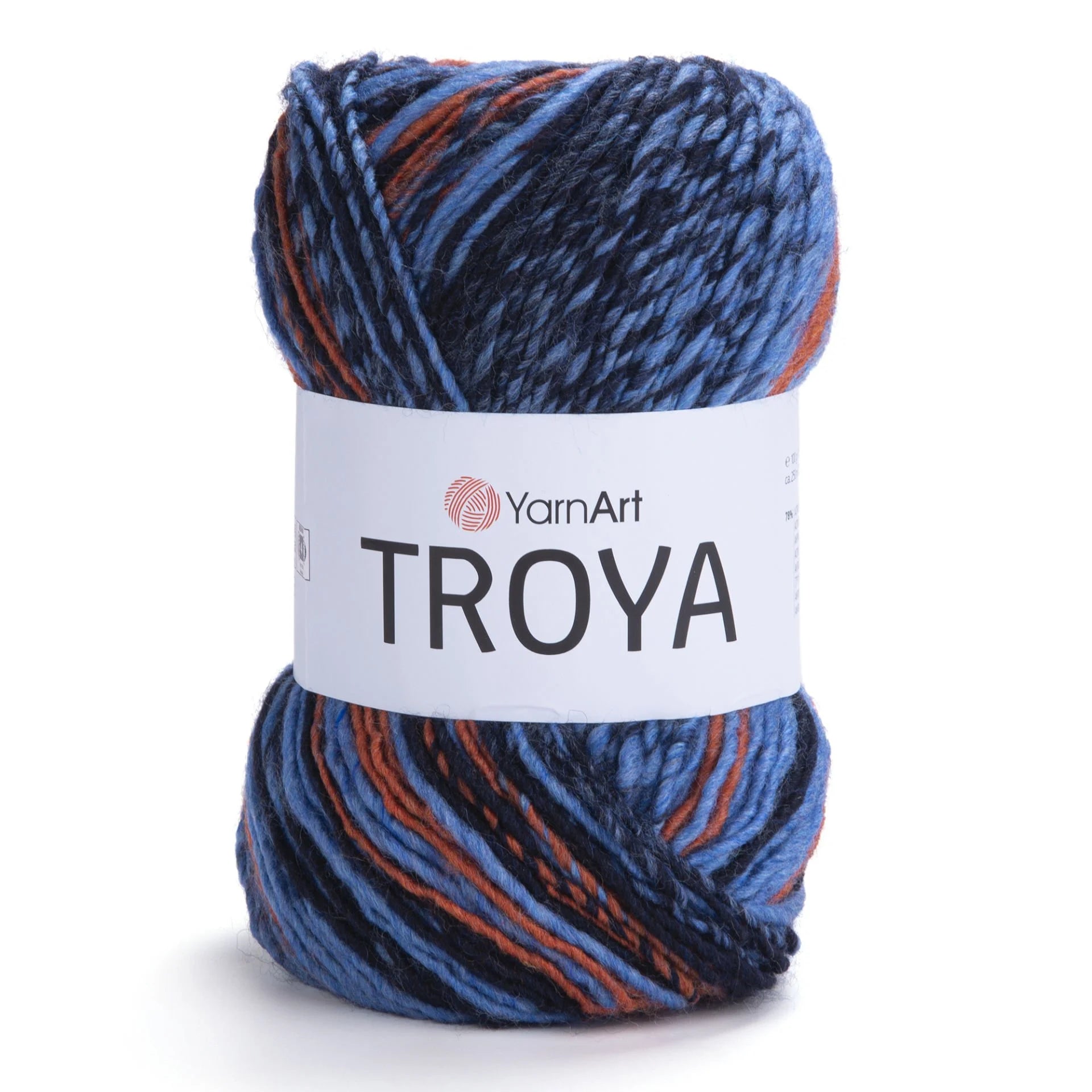YarnArt Troya ebruli yarn is a cozy wool-acrylic blend featuring 22% wool that delivers warmth and softness in every skein. The generous 250 m length in a 100 g ball makes it ideal for knitting or crocheting winter essentials like scarves, hats, cowls, and sweaters with rich, variegated color transitions. This worsted (aran) weight yarn works beautifully with 5 mm (US 8/H-8) needles or hooks, offering both texture and color that effortlessly elevate your cold-weather creations