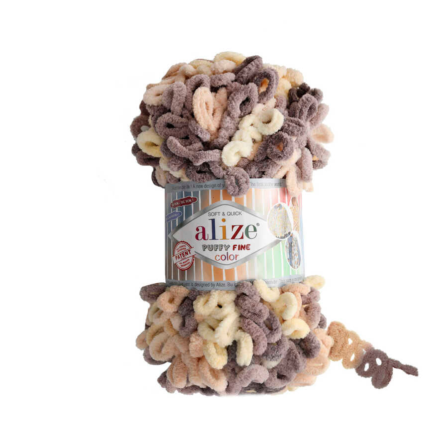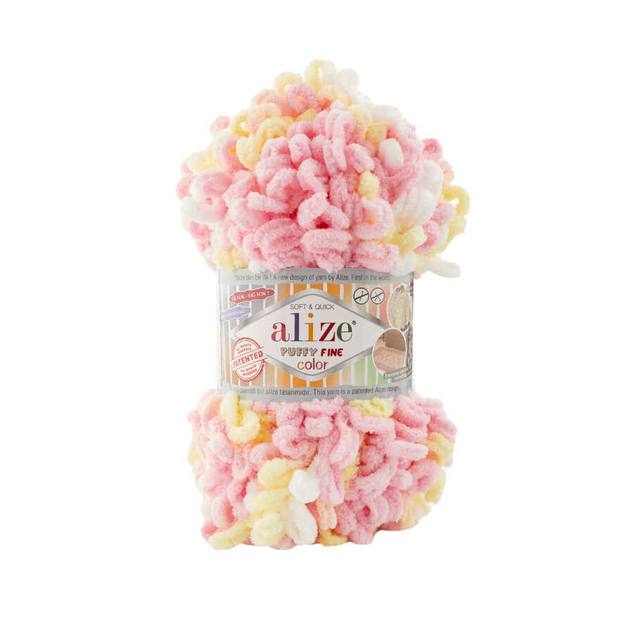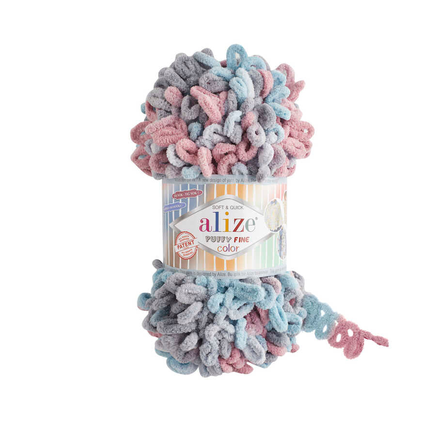 Alize Puffy Fine Color is een superzacht micro-polyestergaren speciaal ontworpen voor vingerbreien. Het is licht, donzig en gebruiksvriendelijk, waardoor je zonder naalden prachtige projecten kunt maken — van babydekens tot woonaccessoires.