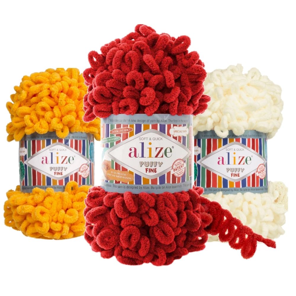 Alize Puffy Fine is het originele vingerbreigaren met kleinere lussen. Je hebt geen naalden of haak nodig – alleen je handen! Perfect voor zachte babydekens, knuffels, kussens of cosy home decor.