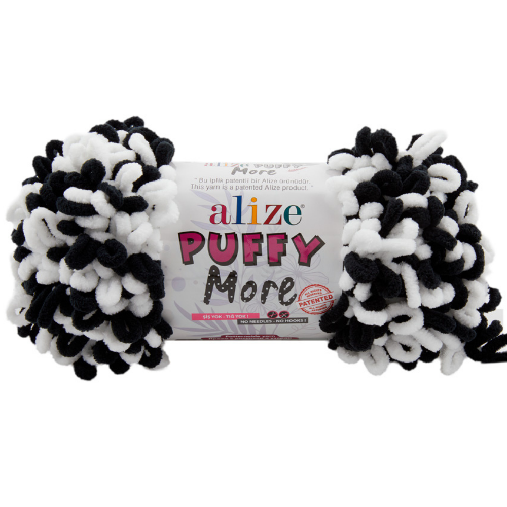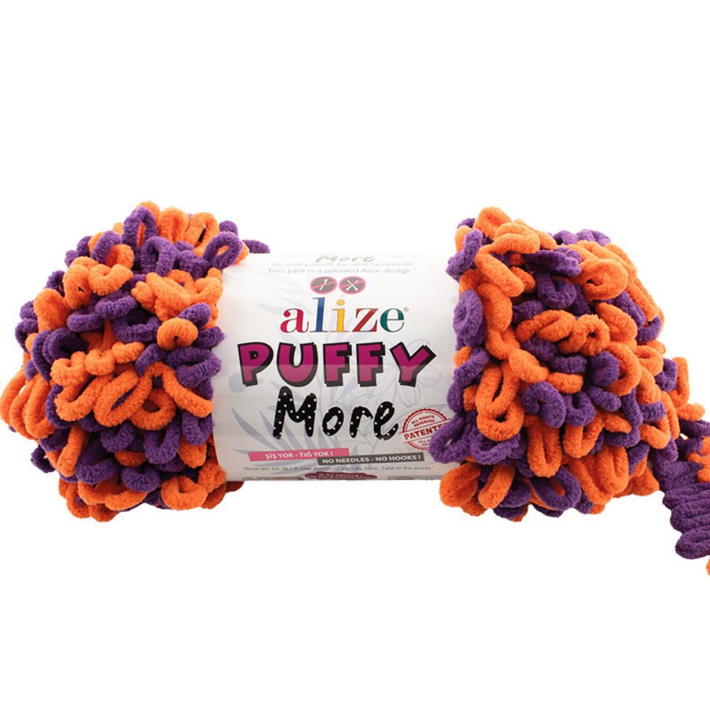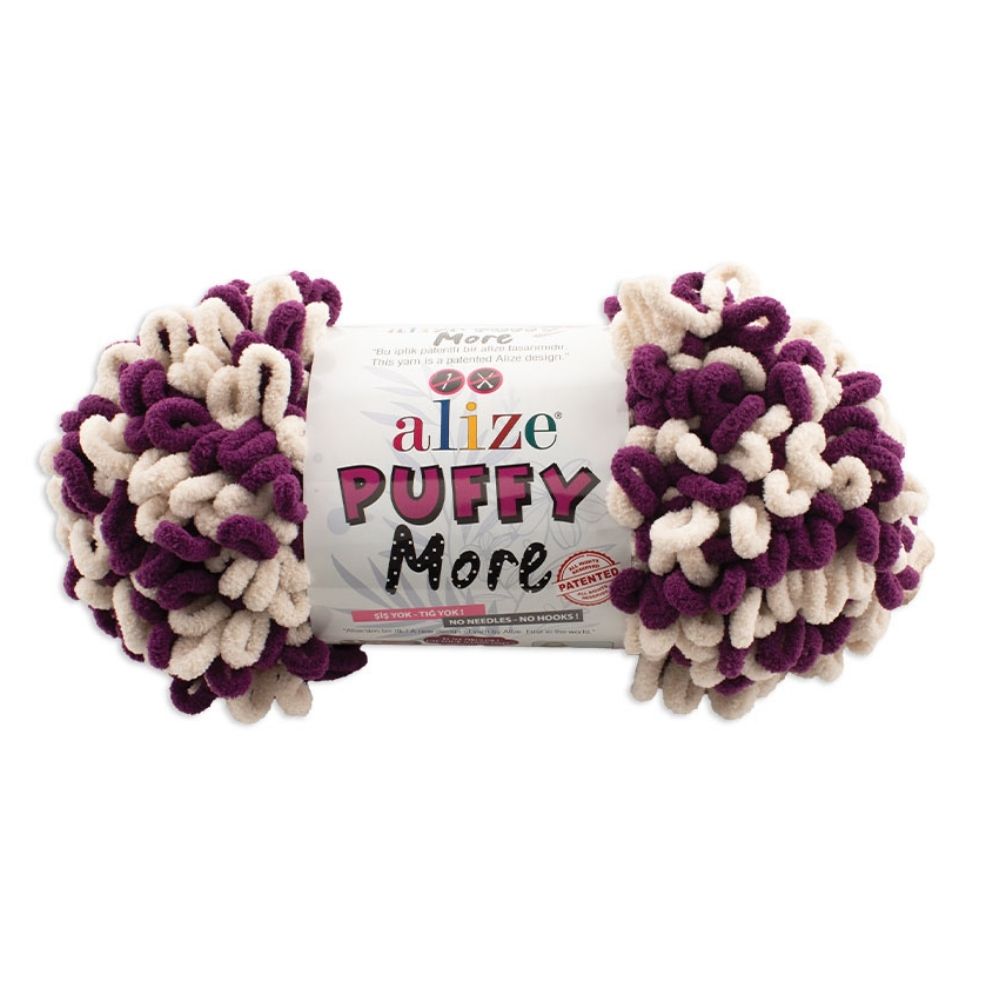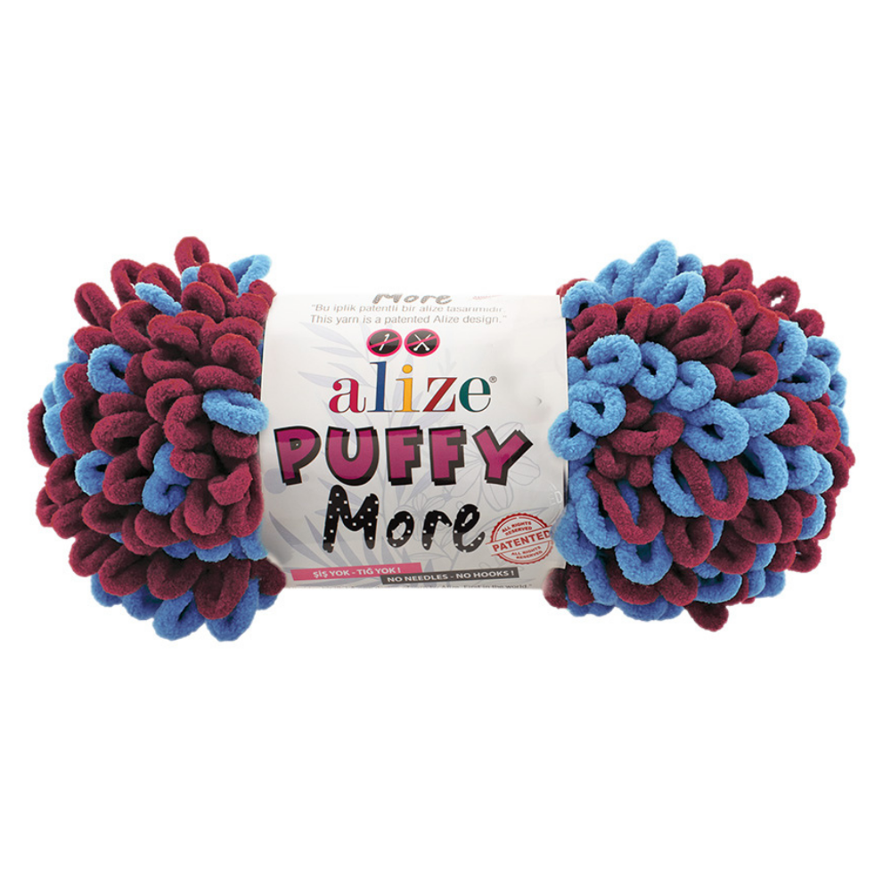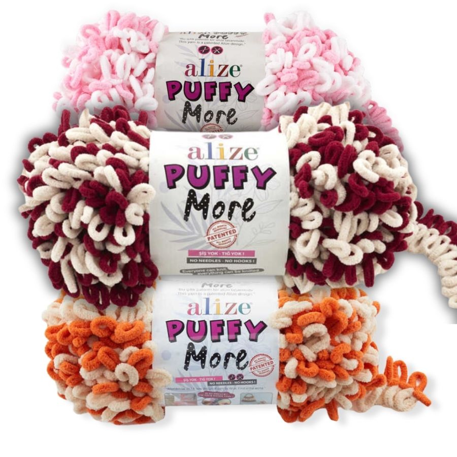 Alize Puffy More is een innovatief dubbelzijdig loopgaren waarmee je tweekleurige patronen kunt breien zonder naalden. Creëer unieke dekens, kussens en accessoires met een luxueus reliëfeffect.