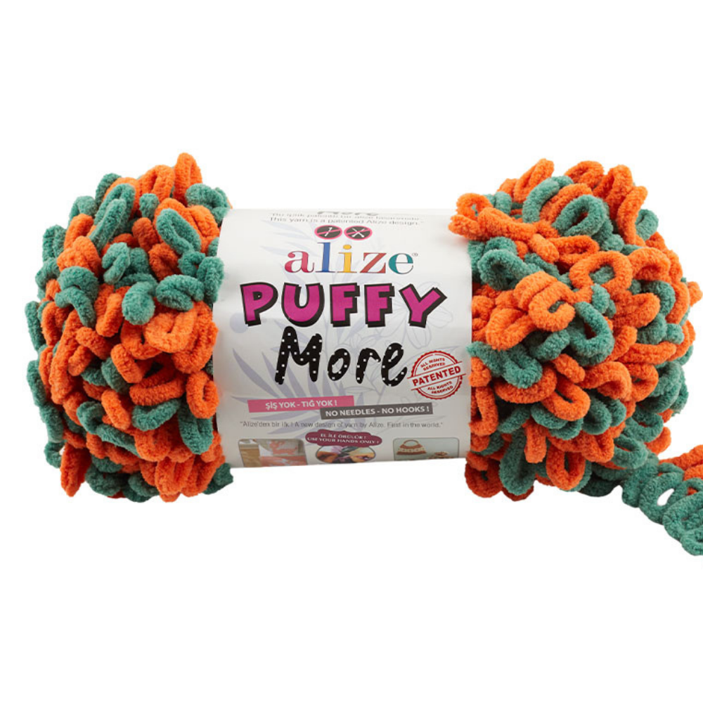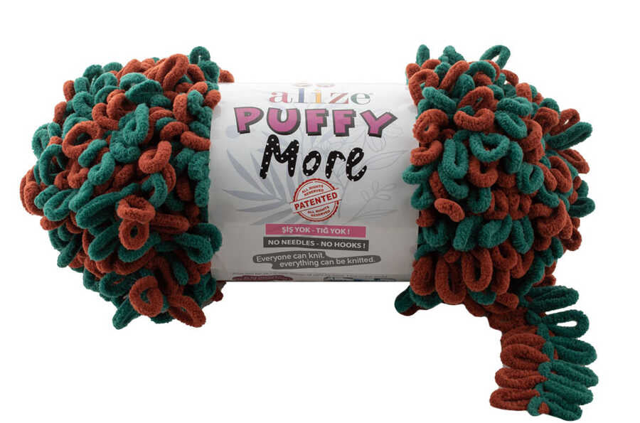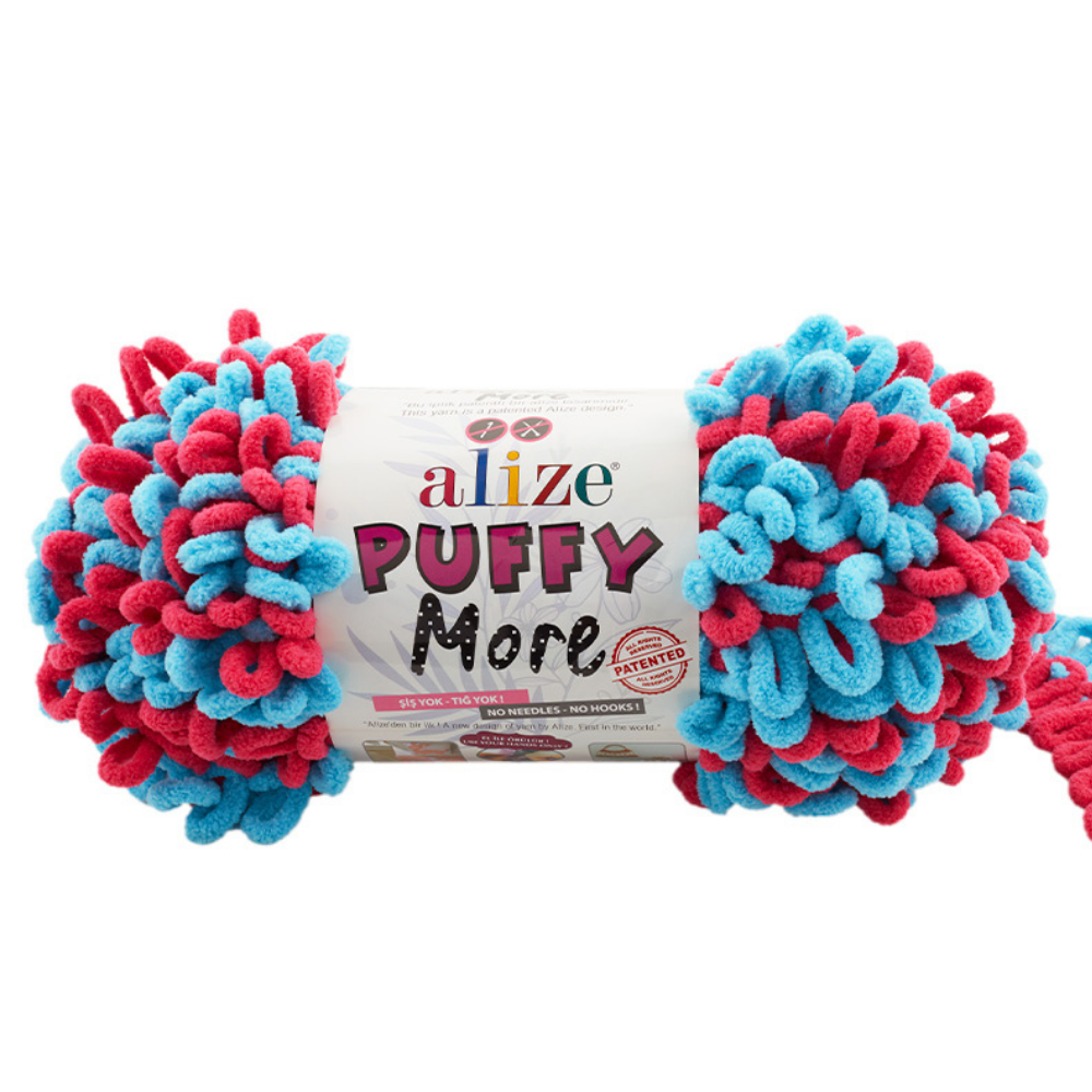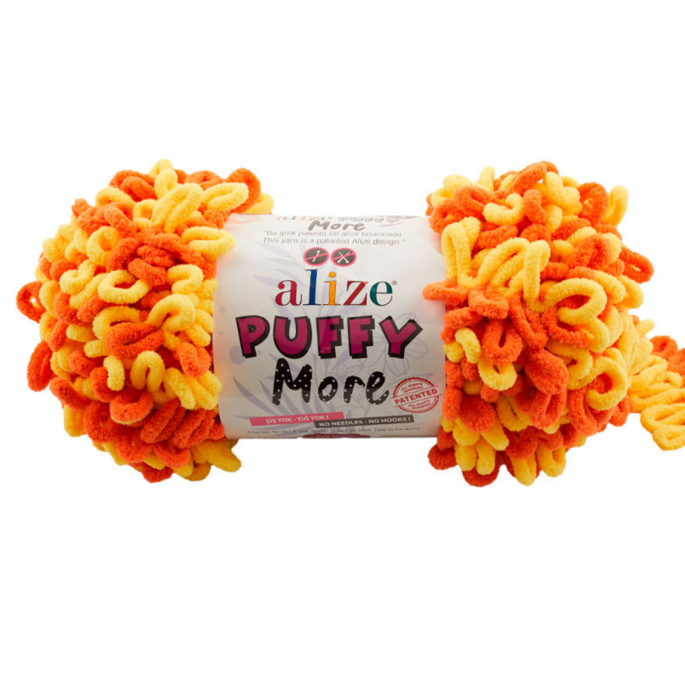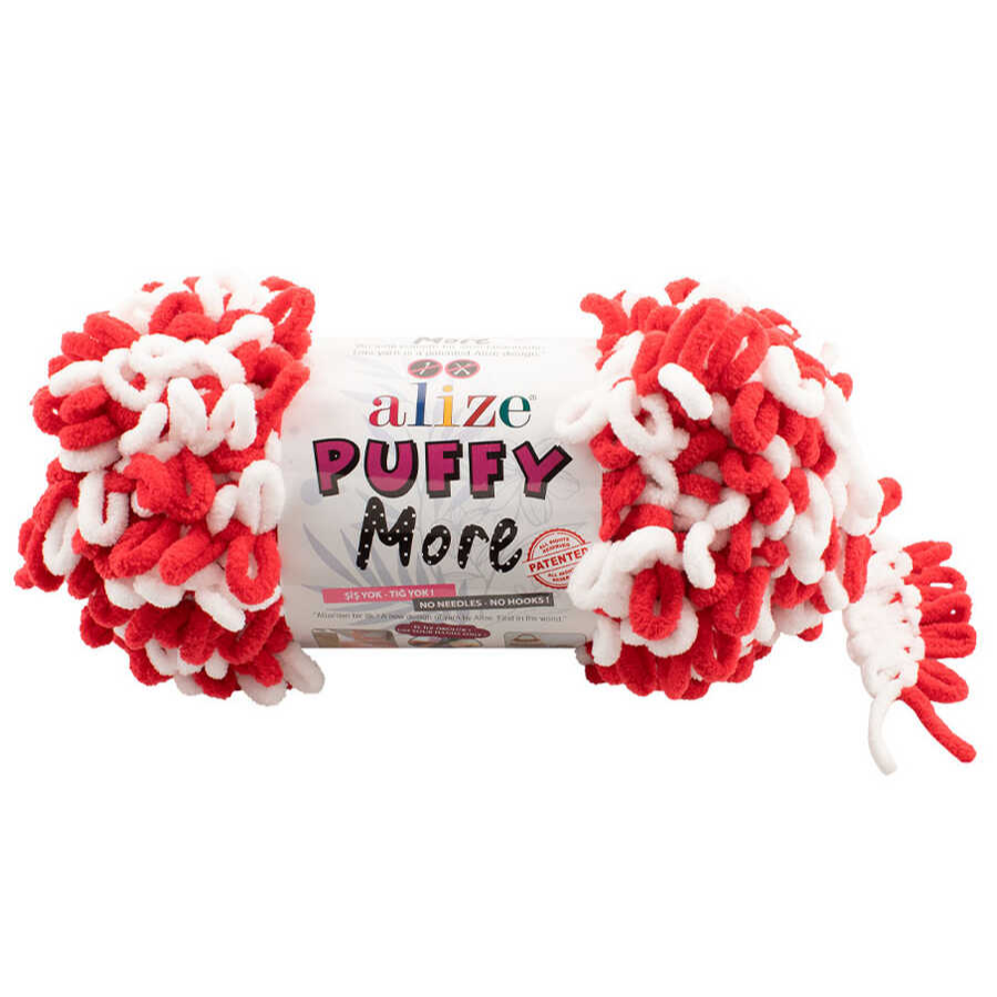 Alize Puffy More is een innovatief dubbelzijdig loopgaren waarmee je tweekleurige patronen kunt breien zonder naalden. Creëer unieke dekens, kussens en accessoires met een luxueus reliëfeffect.