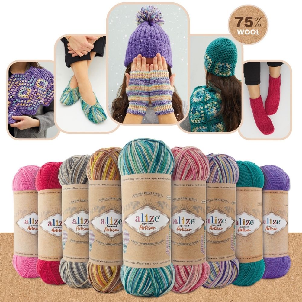 Alize Superwash Artisan is een premium sock-wolgarenan in een verfijnde kleurverloop. Dankzij de superwash-techniek wasbaar en perfect voor sokken, sjaals en accessoires.