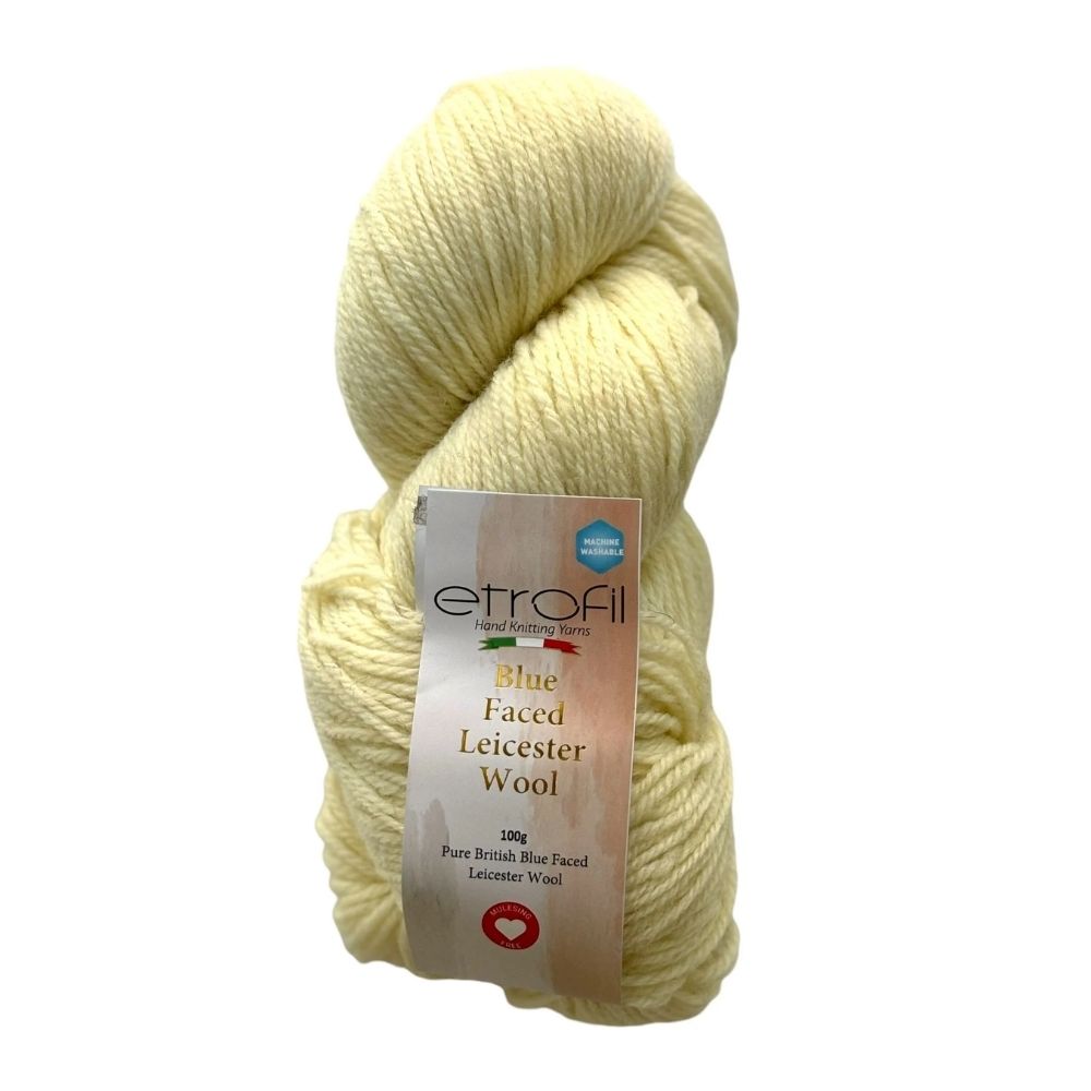 Etrofil Blue Faced Leicester Wool is een premium garen van 100 % Blue Faced Leicester wol, bekend om zijn zachte structuur, lange vezel en prachtige glans. Dit lichte / DK garen biedt uitstekende stekenkwaliteit en ademend vermogen.
