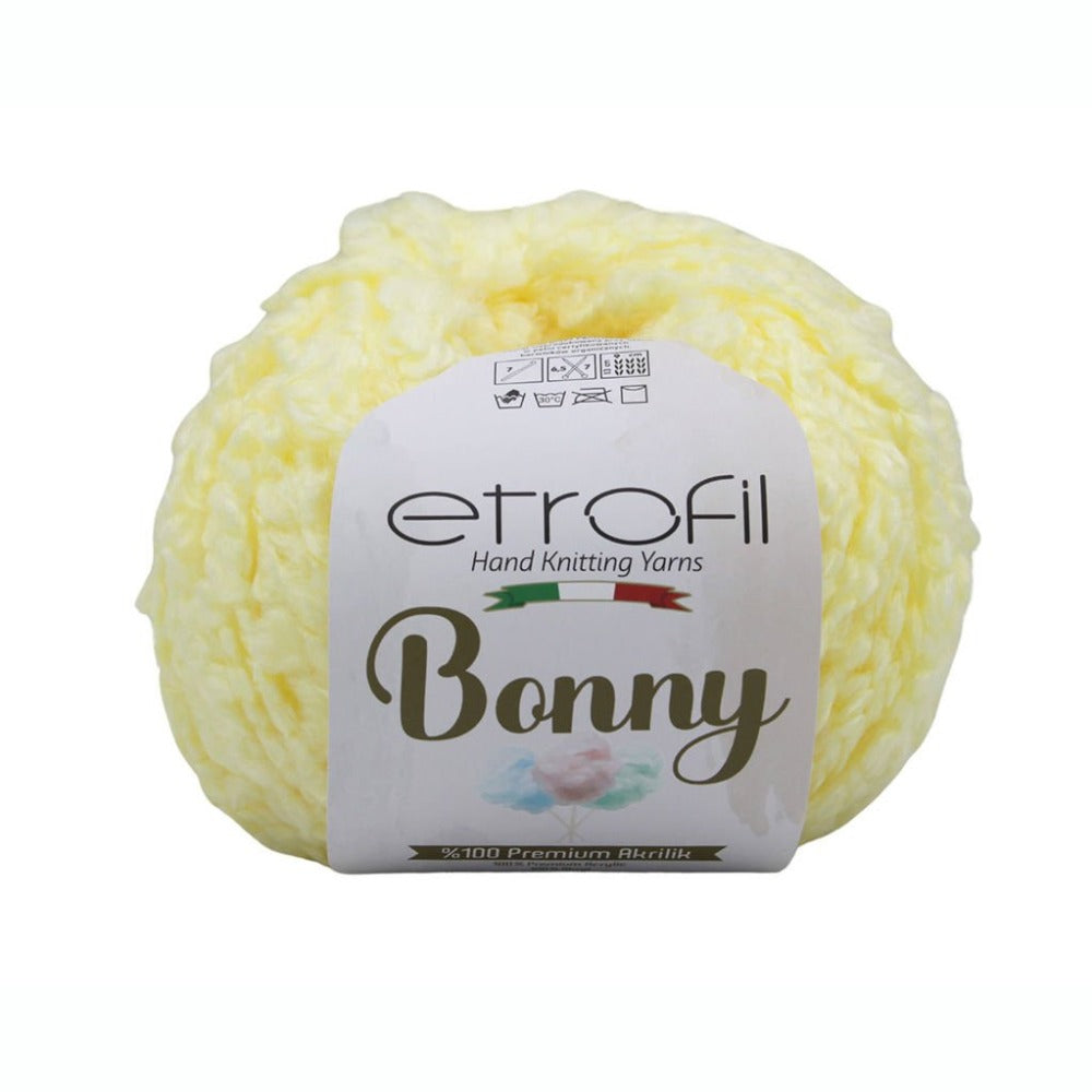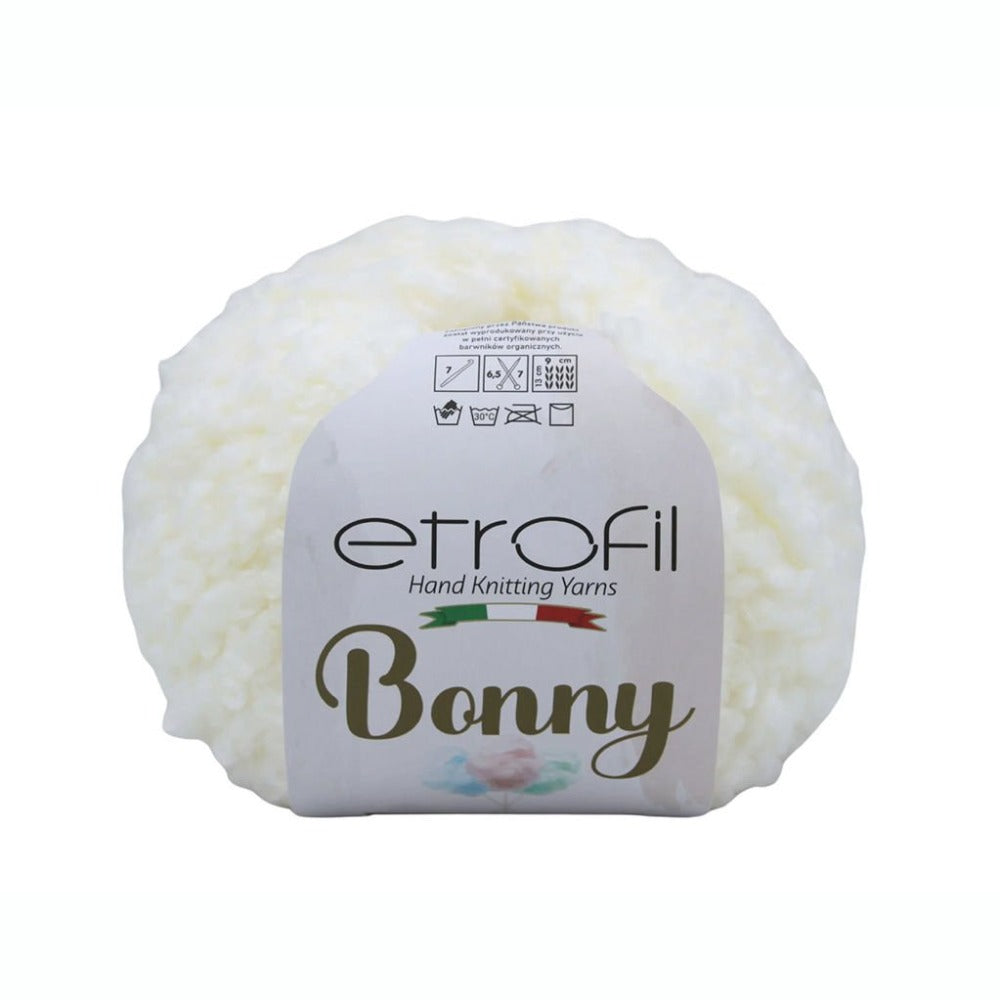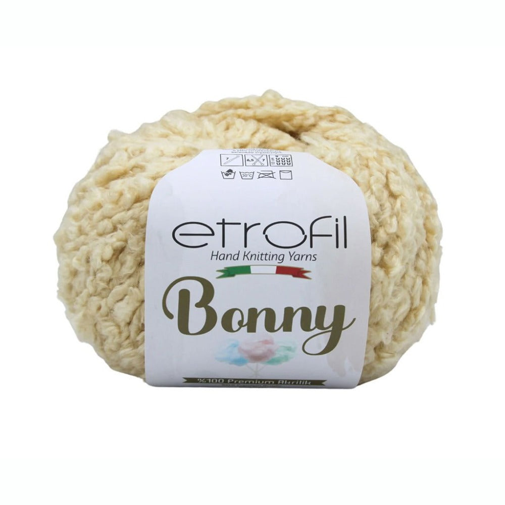 Garen Dikte: DikEtrofil Bonny onderscheidt zich door zijn wolkachtige zachtheid en pluizige structuur. Het zijdezachte gevoel en de elegante volumeopbouw zorgen voor comfortabel en stijlvol breiwerk.