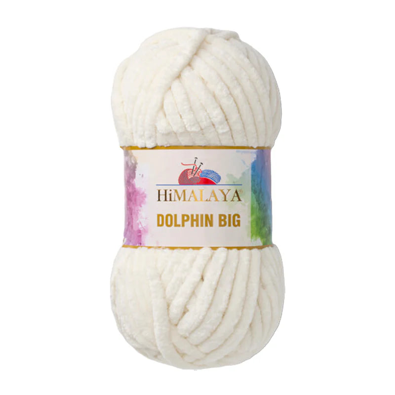 Himalaya Dolphin Big is een super bulky chenille garen van polyester, ideaal voor warme dekens, dikke truien, vesten en accessoires. Het grote garendikte laat je snel werken en creëert volumineuze, zachte steken.