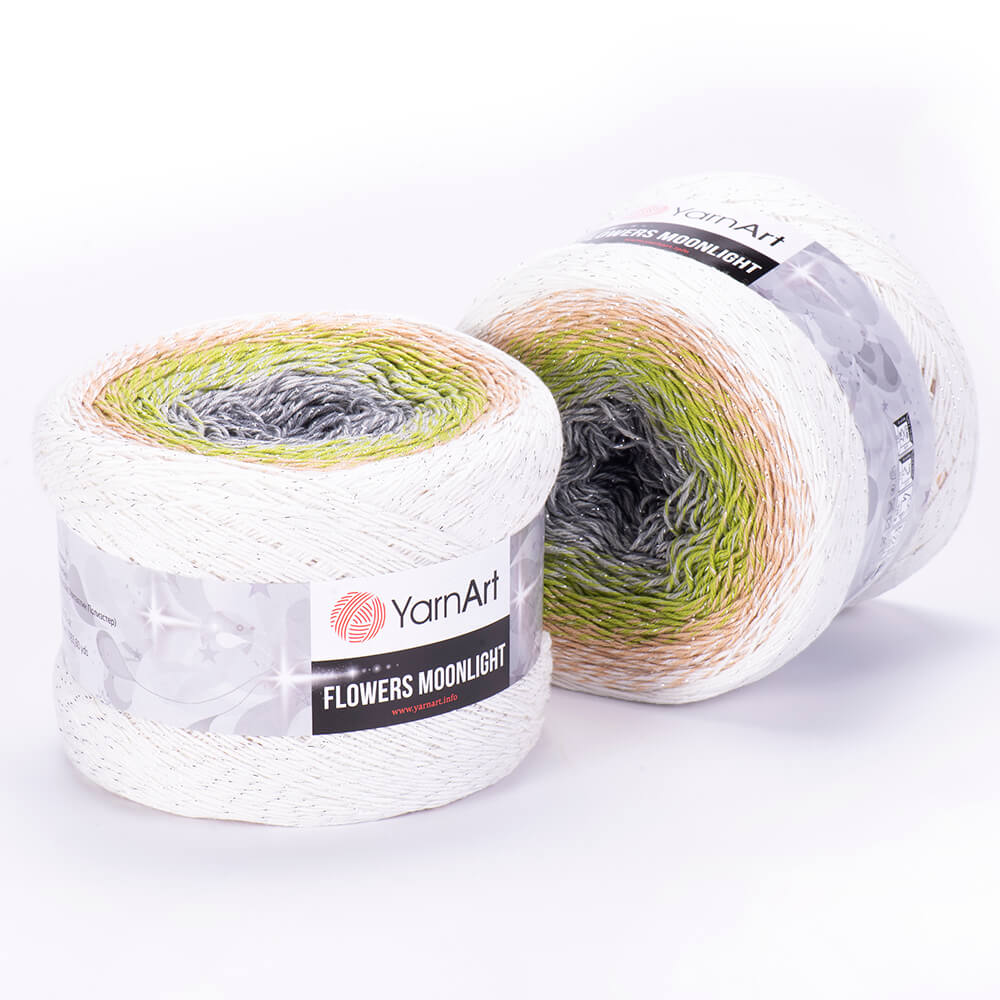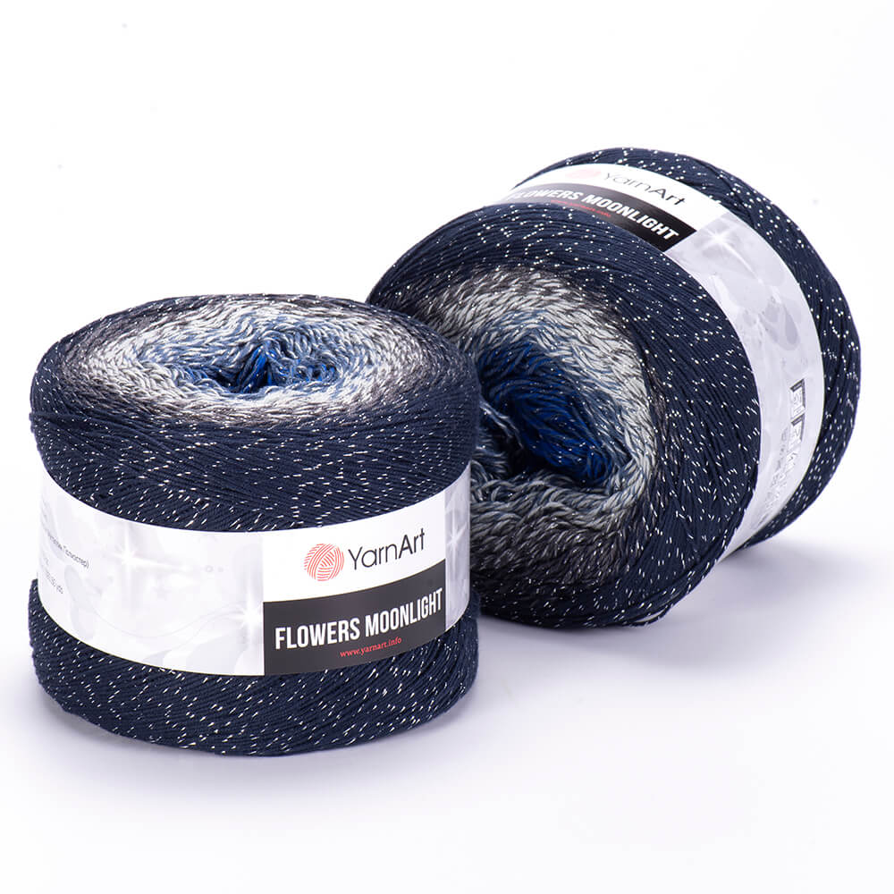 YarnArt Flowers Moonlight is een luxe cakegaren dat de zachtheid van katoen combineert met een subtiele metallic glans. Door de toevoeging van glinsterende draden krijgt elk project een elegante uitstraling, ideaal voor stijlvolle handwerkcreaties.