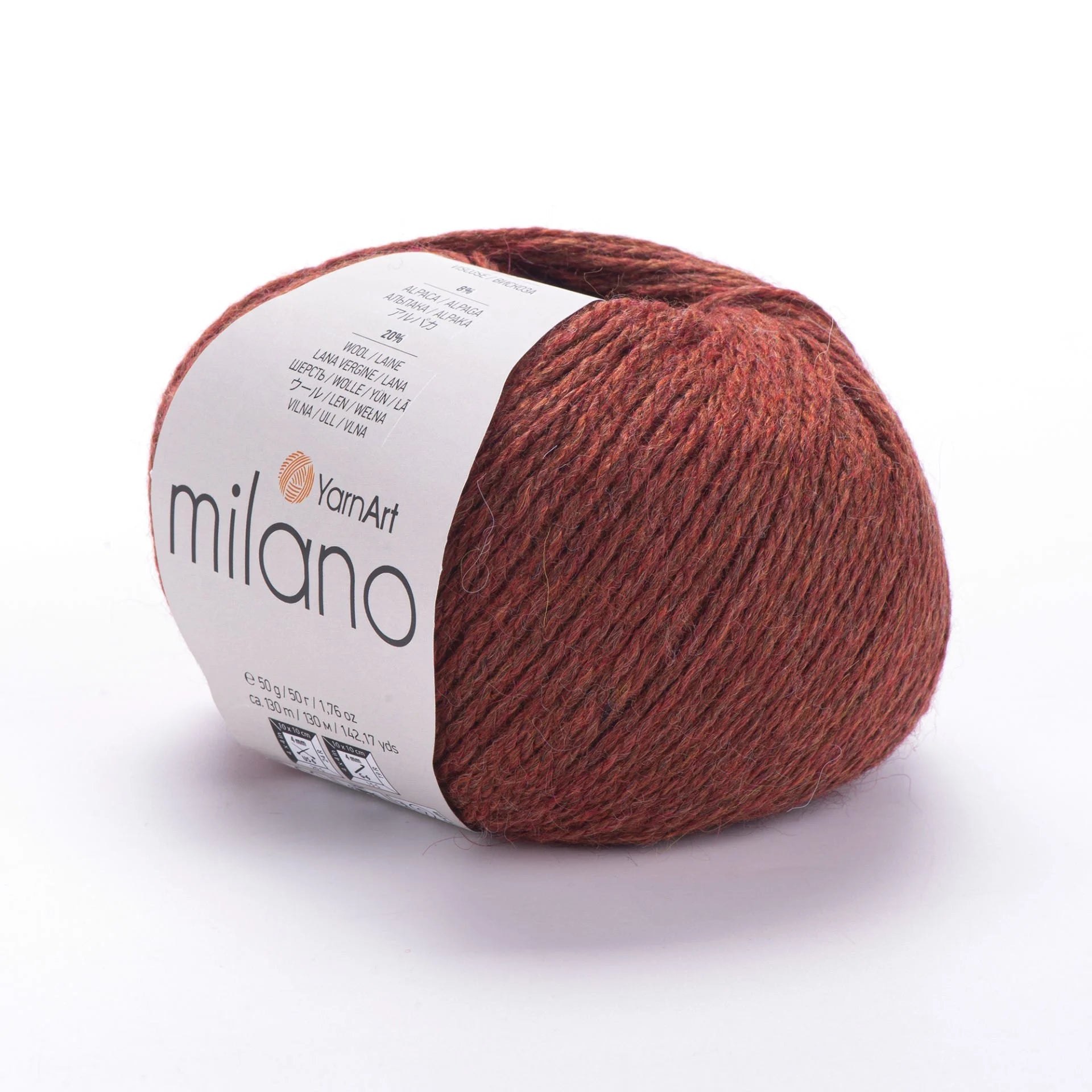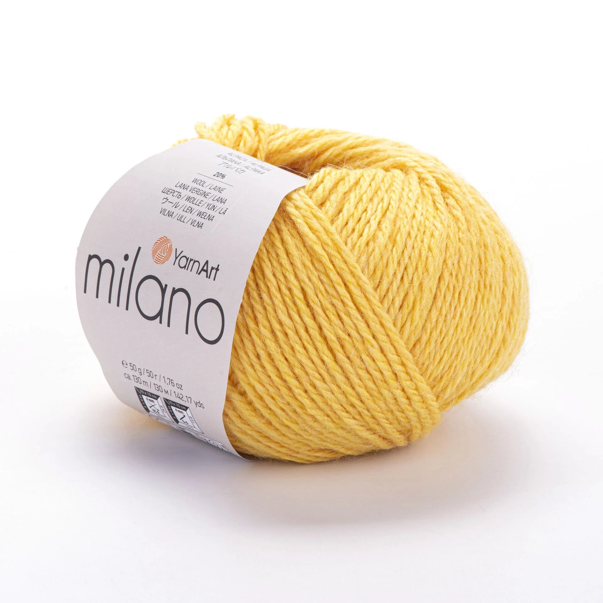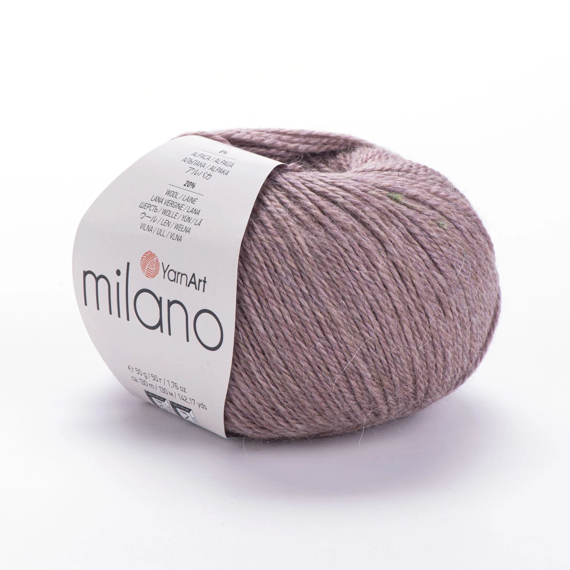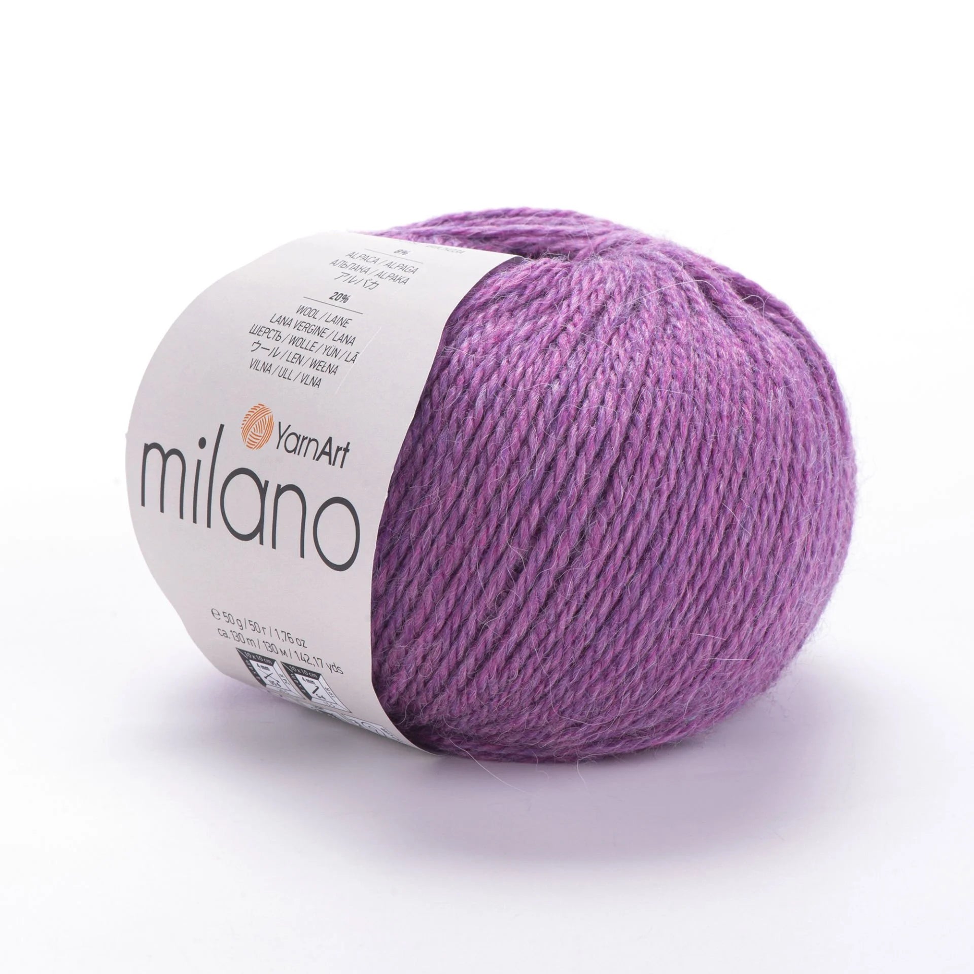 YarnArt Milano is a luxurious DK-weight yarn blending alpaca, wool, viscose, and acrylic. The mix provides warmth, softness, drape, and durability. With 130 m in each 50 g skein, it's excellent for creating soft, cozy apparel like shawls, cardigans, scarves, and winter hats with beautiful stitch definition and enhanced comfort.