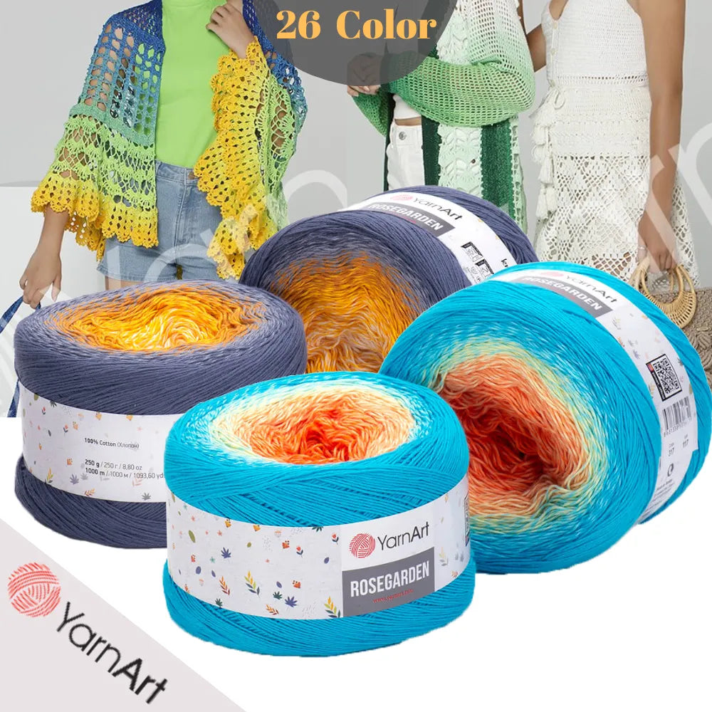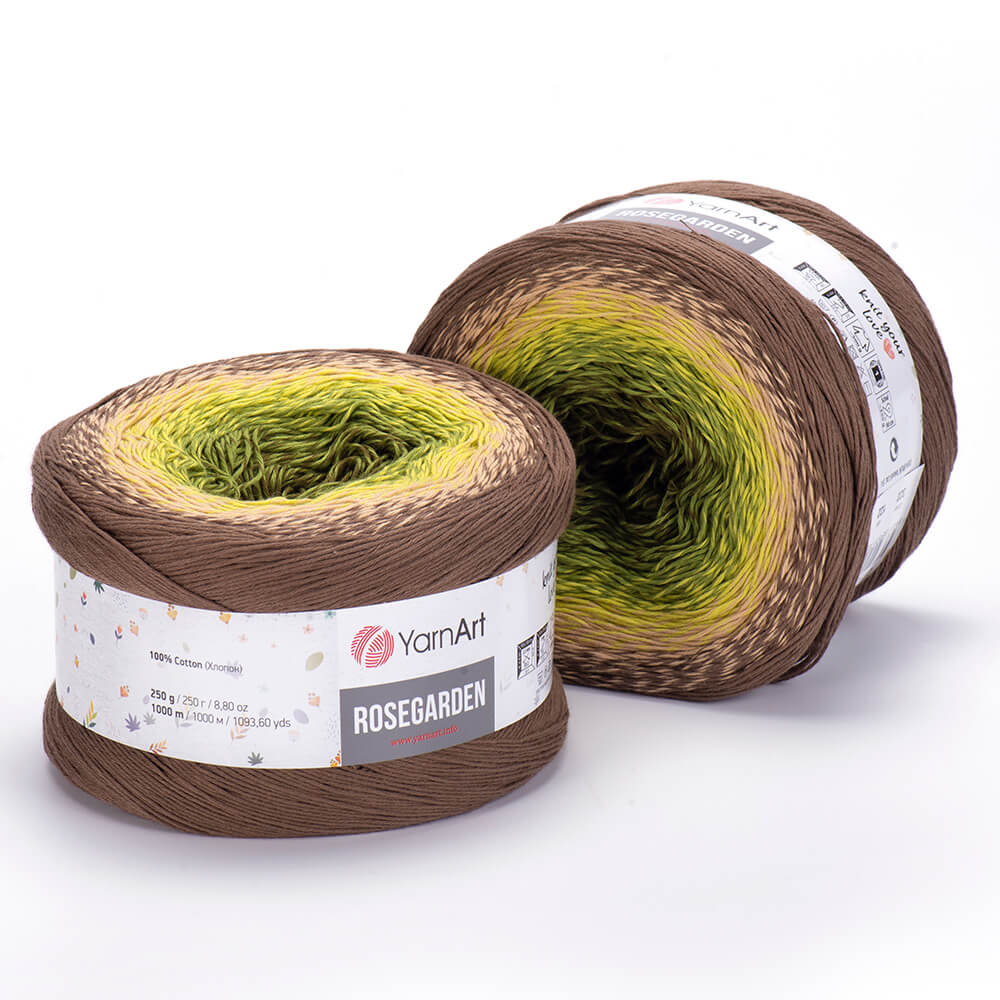 YarnArt Rosegarden is een prachtig verloopgaren van 100% katoen met een zachte, natuurlijke textuur. Dit garen heeft subtiele kleurverlopen in een "cake"-vorm, waardoor het ideaal is voor zomerse projecten zoals jurken, blouses, sjaals, rokken en babykleding. Dankzij de lengte van 1000 meter kun je met één bol een middelgroot project volledig afmaken.
