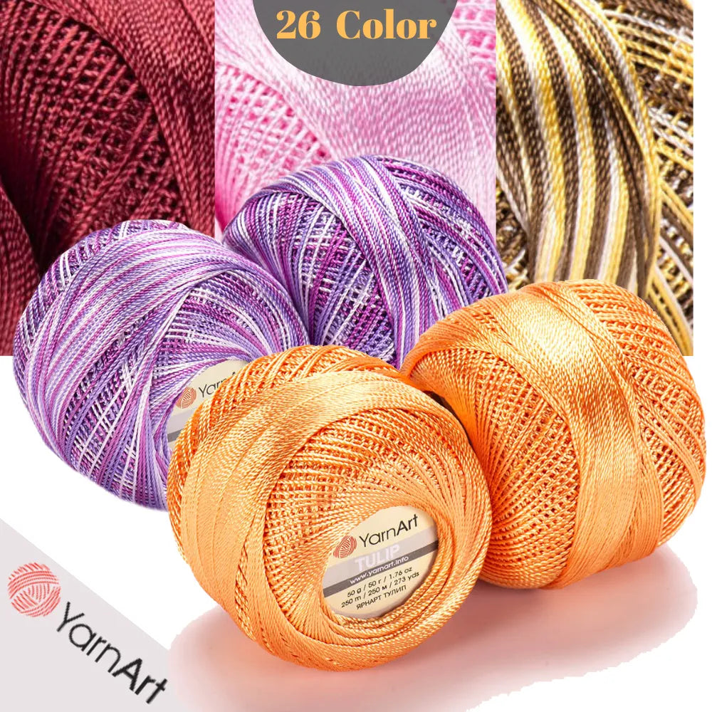 YarnArt Tulip is een glanzend en zijdeachtig haakgaren gemaakt van 100% microvezel. Dankzij de gladde draadstructuur en duurzame glans is dit garen perfect voor elegante zomerprojecten zoals jurken, blouses, hoeden, haaraccessoires en woondecoraties.